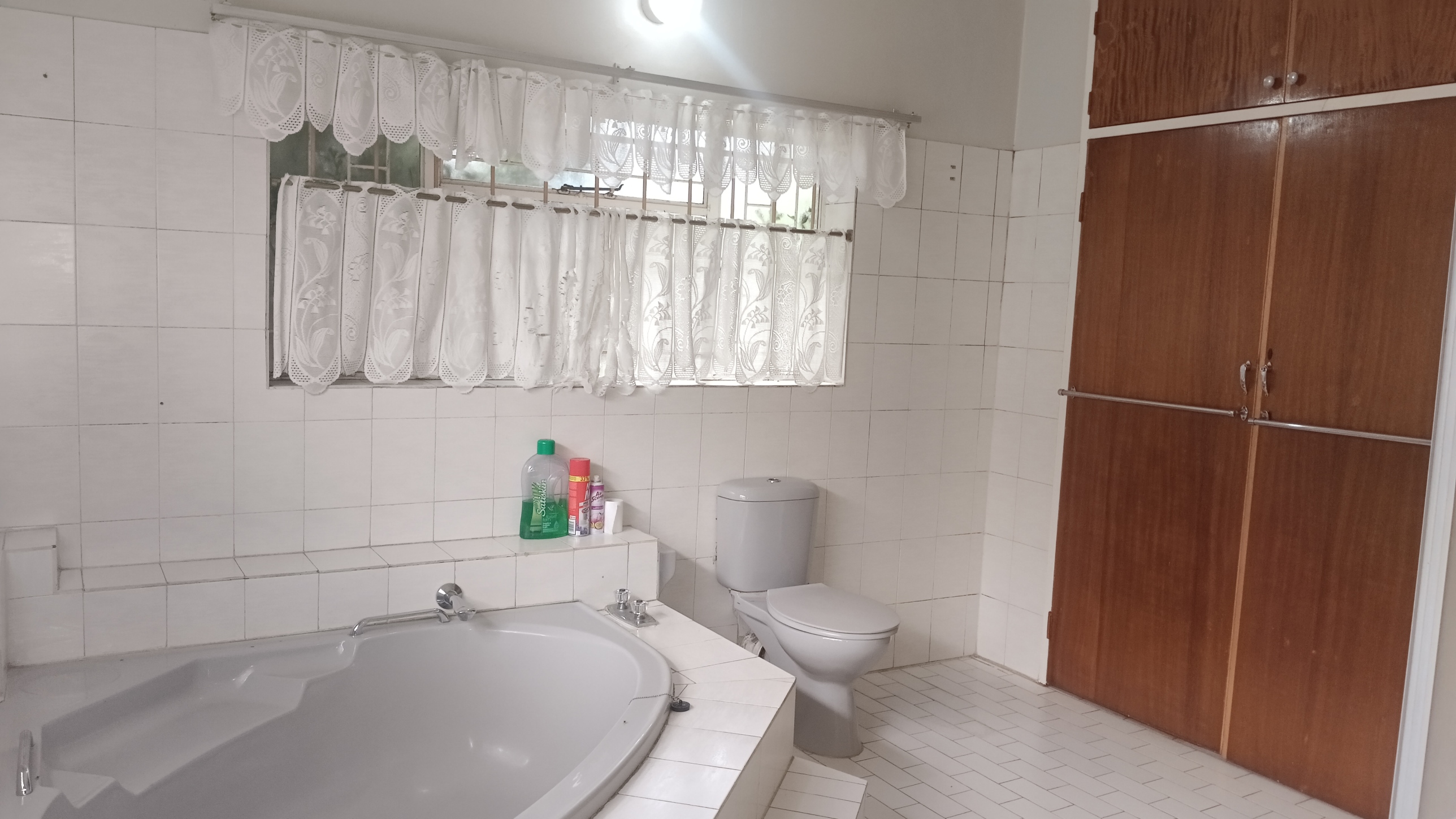 Each of the generously sized bedrooms comes with built-in cupboards and wall-to-wall carpets, providing comfort and ample storage space. A standard bathroom includes a bathtub, basin, and toilet, while the main bedroom features an en-suite bathroom complete with a corner bathtub, basin, shower, and toilet.