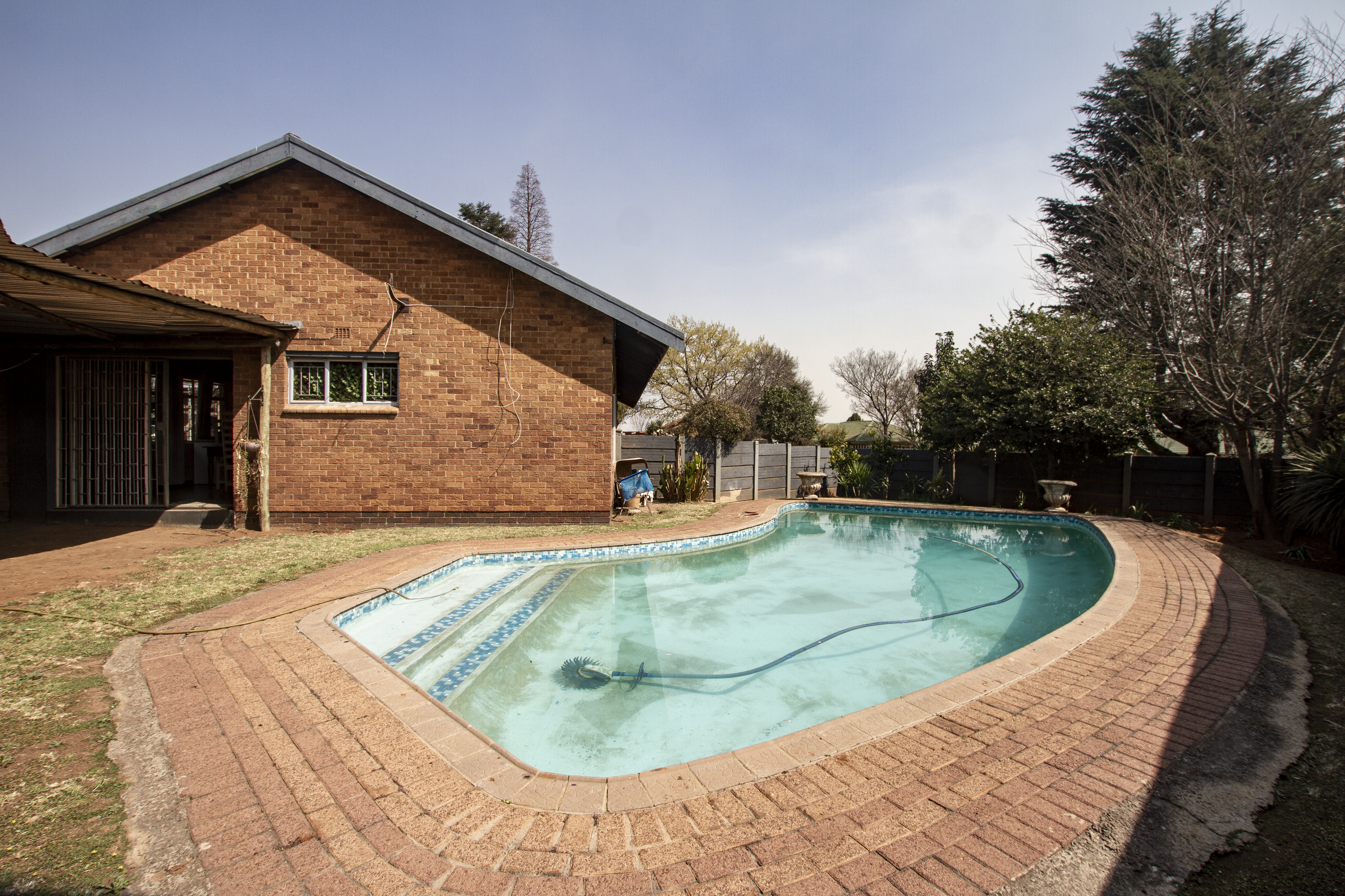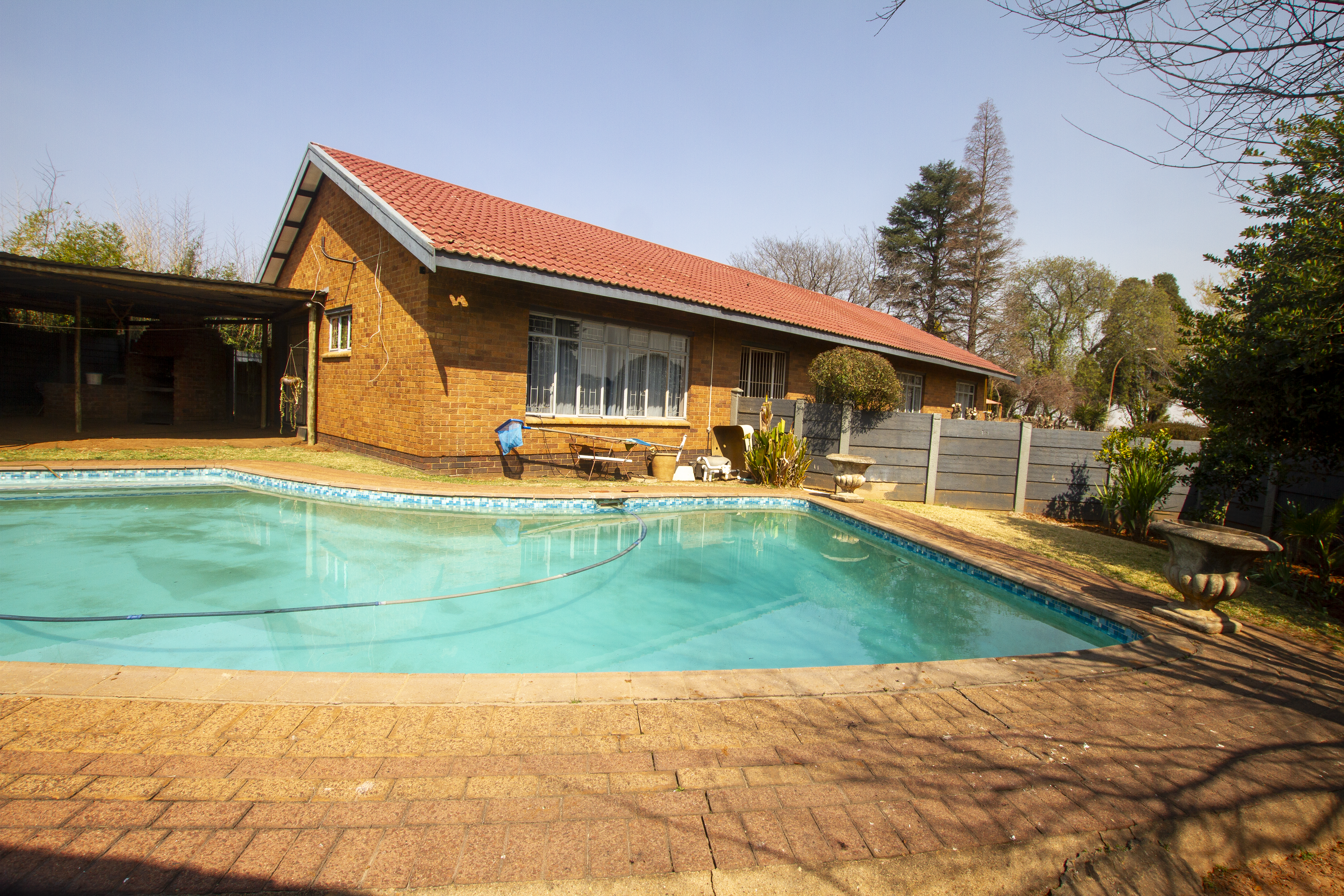 Sparkling pool with secure enclosure, perfect for summer days