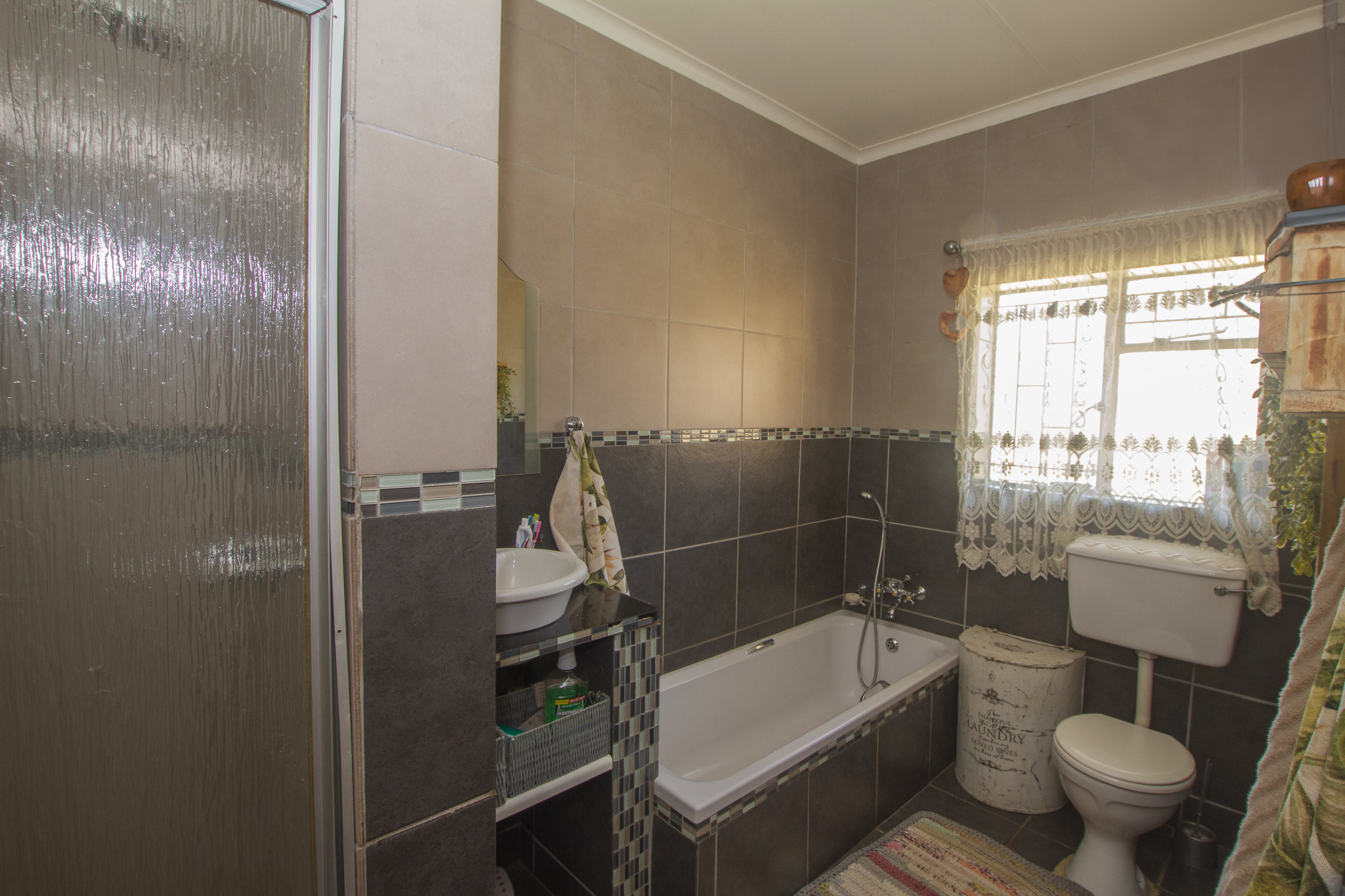 Upgraded kitchen with gas hob and modern bathroom plus a convenient guest toilet