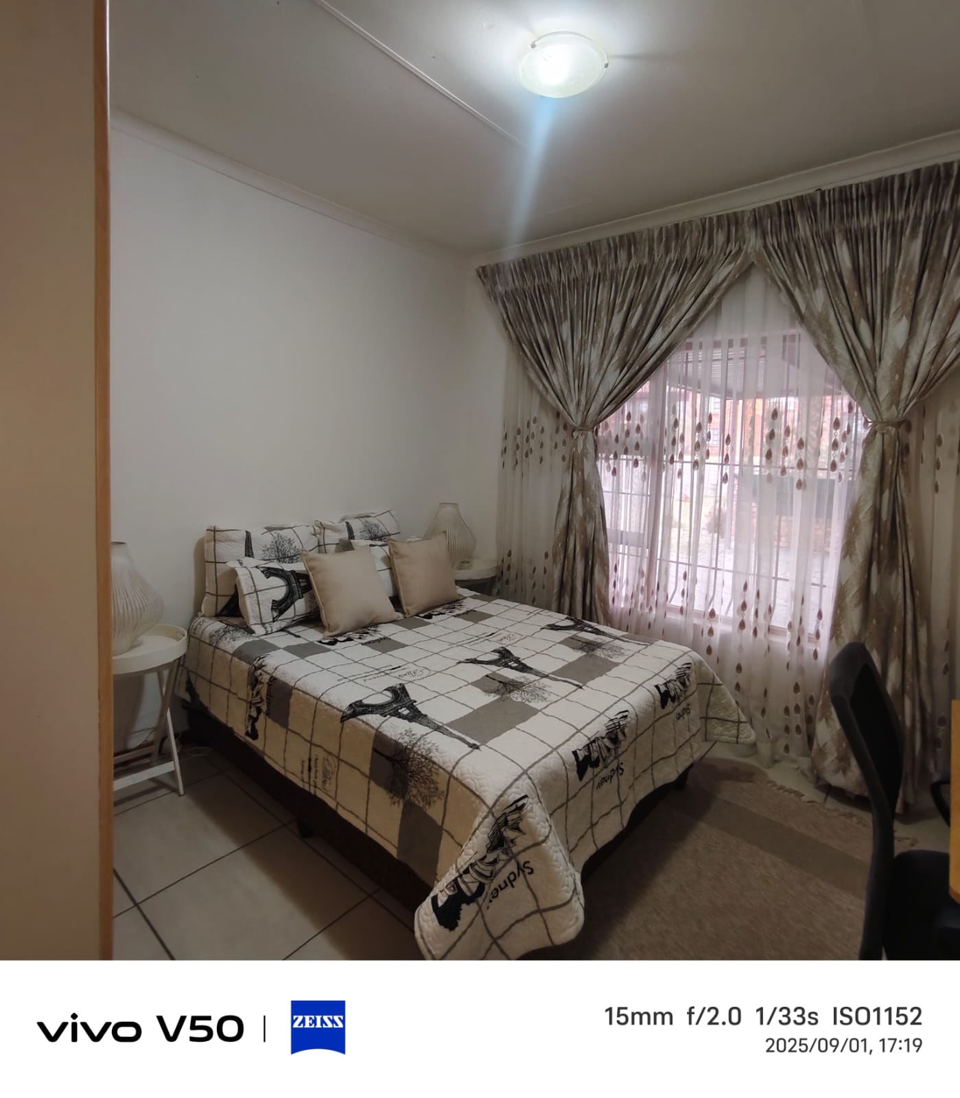For year-round convenience, two JoJo tanks with a pressure pump ensure a reliable water supply. Extending from the living room, a stylish entertainment lounge with an indoor braai creates the perfect setting for intimate gatherings, family celebrations, or simply unwinding in comfort.