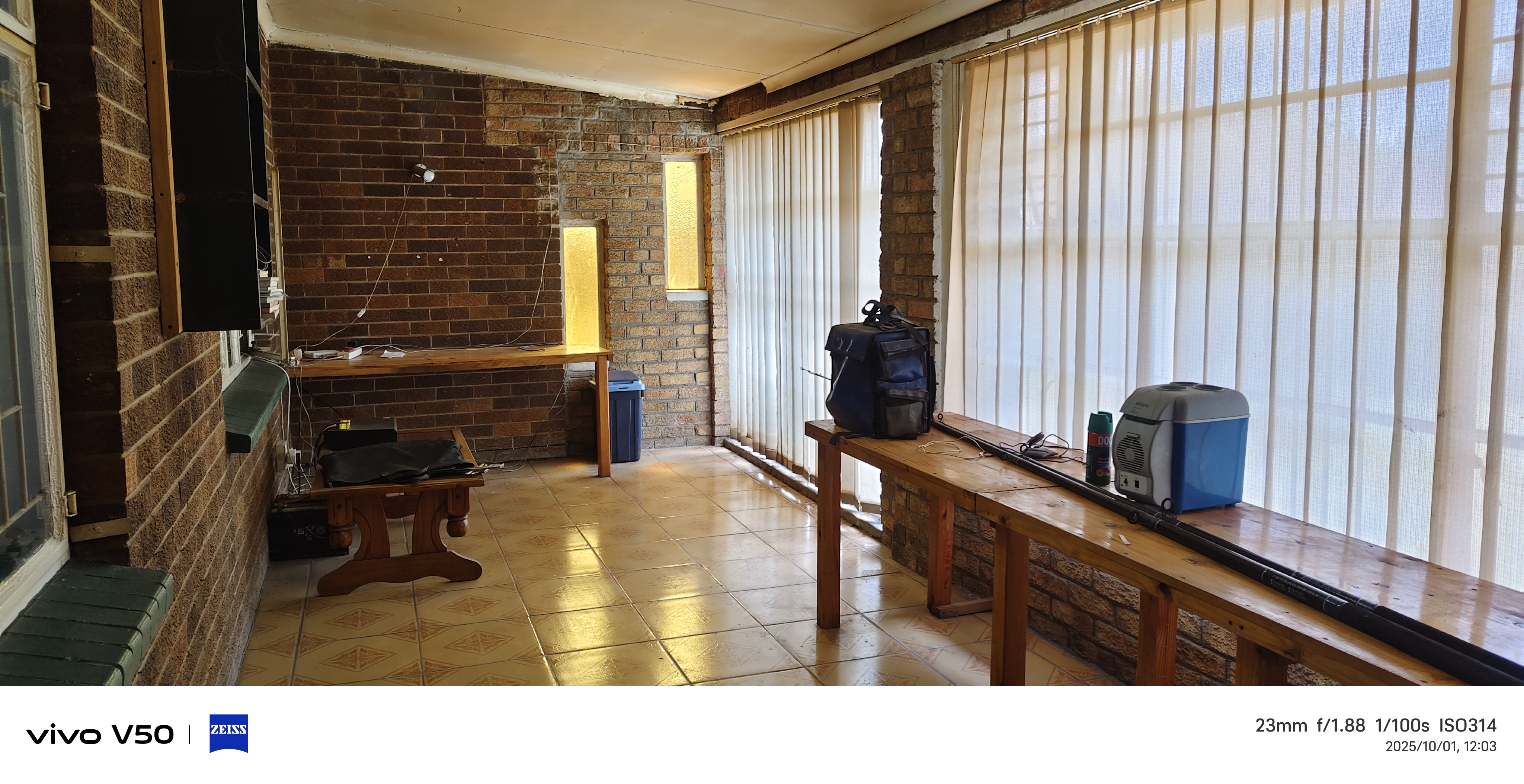 This property offers both comfortable living and exciting income opportunities. The home features a spacious living room that flows seamlessly into the dining area, which opens onto a covered stoep through a sliding door fitted with a safety gate.