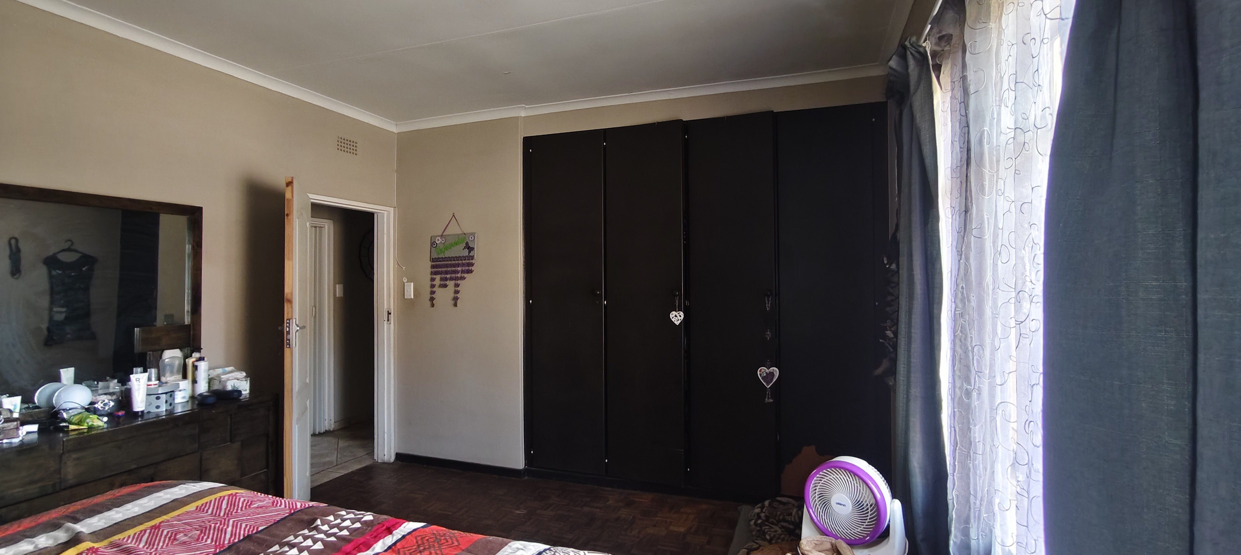 The interior features wall-to-wall tiles, with a touch of carpet in the living area for added comfort. Ample cupboard space throughout the house makes organization effortless. The modernized bathroom includes a bathtub, shower, and basin, with a separate toilet for added convenience. All three bedrooms are generously sized and fitted with built-in cupboards.