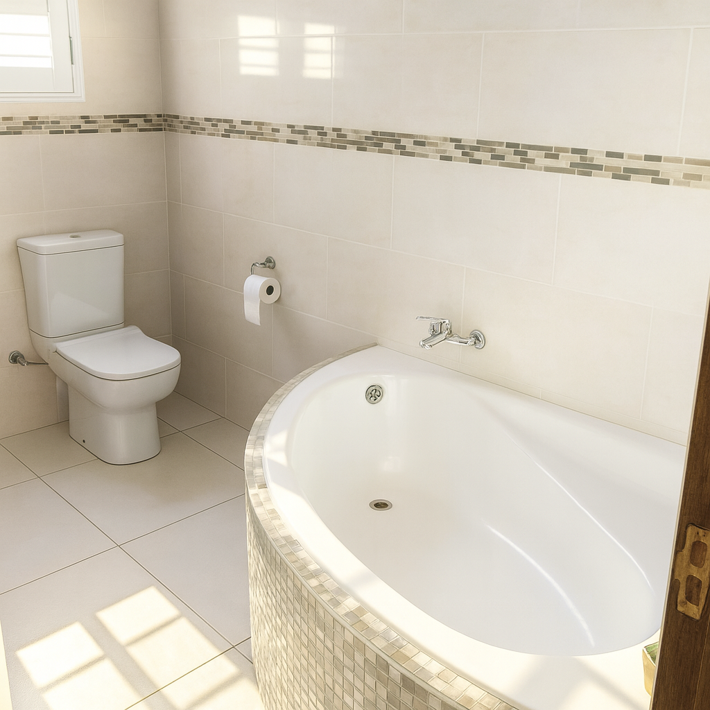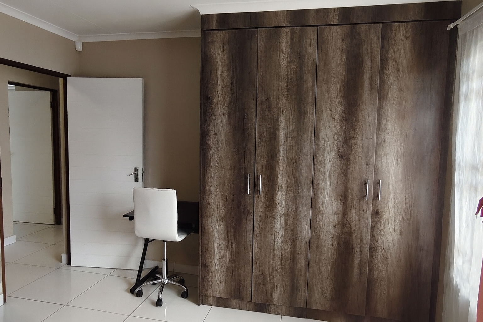 Down the hallway, you will find a neat guest bathroom fitted with a bathtub, toilet, and basin. All three bedrooms are spacious and equipped with well-designed built in cupboards, ensuring practical and organized storage. The main bedroom boasts its own en-suite bathroom complete with a shower, basin, and toilet.
