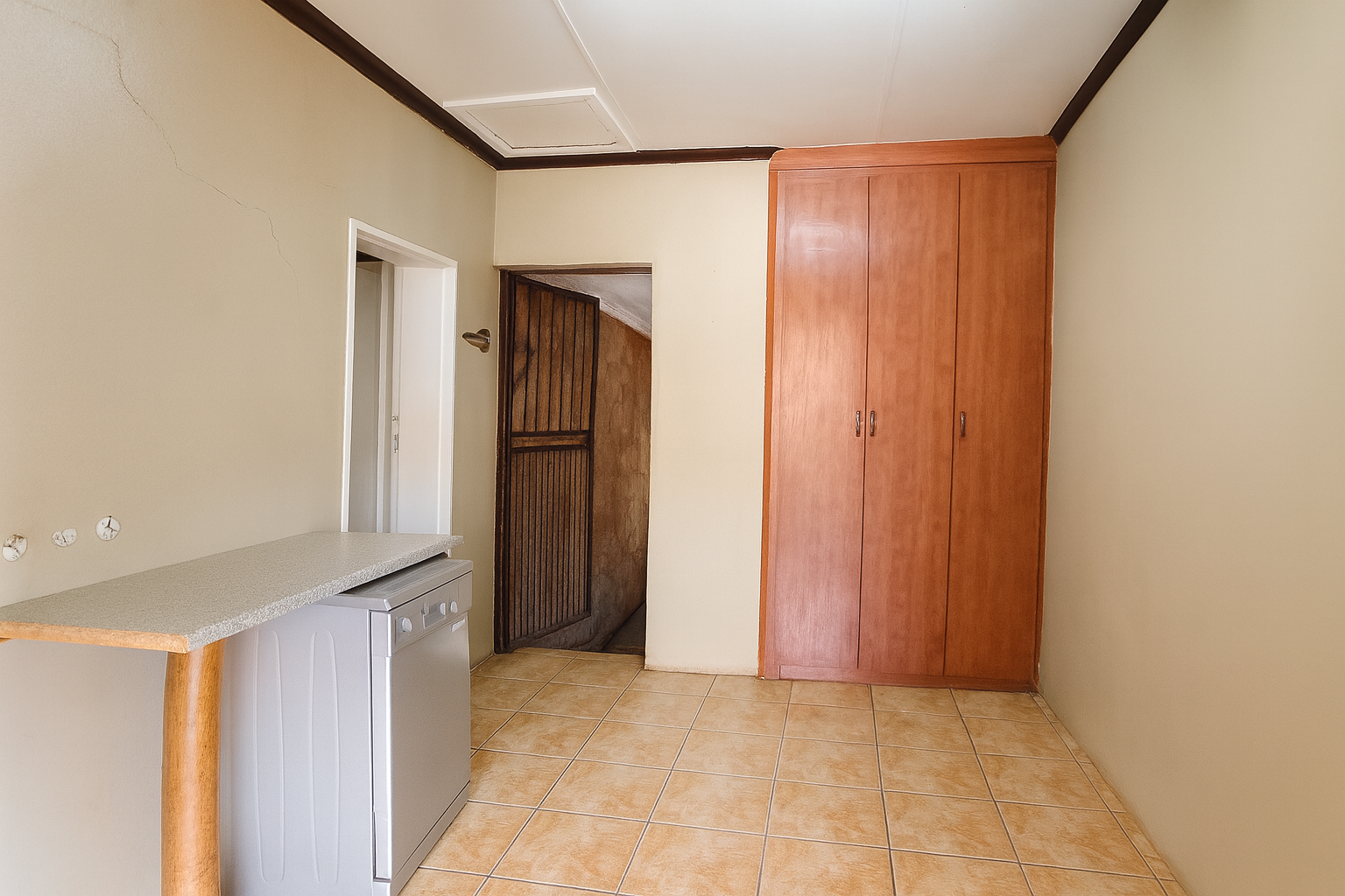 Parking is well taken care of with a double carport and a garage, providing space for up to four vehicles. As you enter through the front door, you are welcomed by a covered swimming pool area (currently unused) that leads directly into the living room, as well as the covered braai area complete with a built in bar ideal for entertaining.