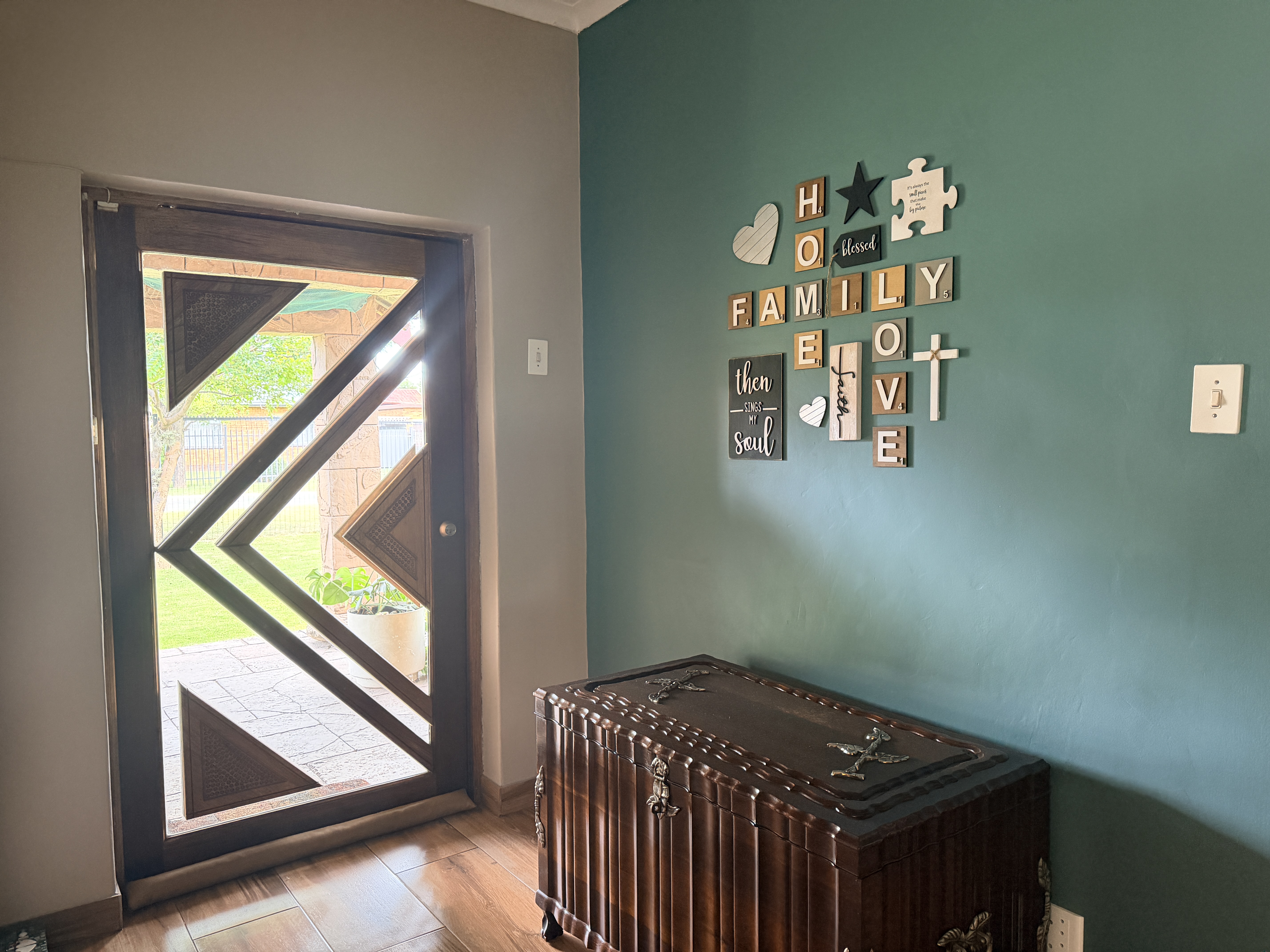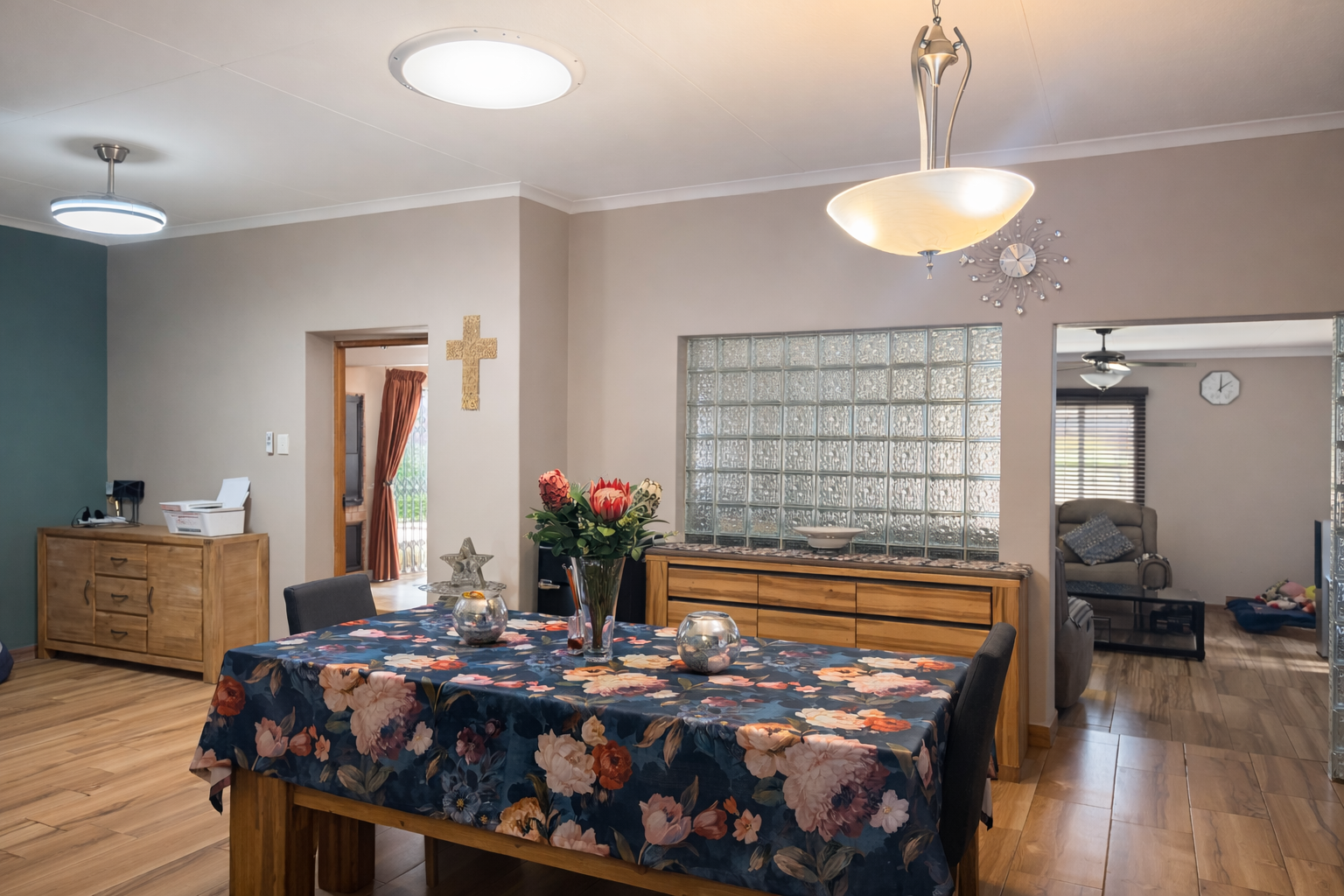 The stunning modern kitchen flows seamlessly into the living room and spacious entertainment area, featuring an indoor braai—perfect for year-round entertaining. Step outside to enjoy a sparkling heated swimming pool and a closed-off lapa, all set within a neatly maintained garden.