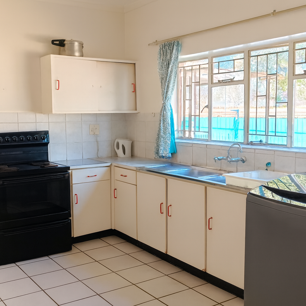 This spacious three bedroom house offers comfortable living with a standard kitchen and a generous open plan living and dining area. Leading from the living room is a separate room that provides access to a single bedroom flatlet with its own bathroom and private entrance ideal for extended family, guests, or added privacy.