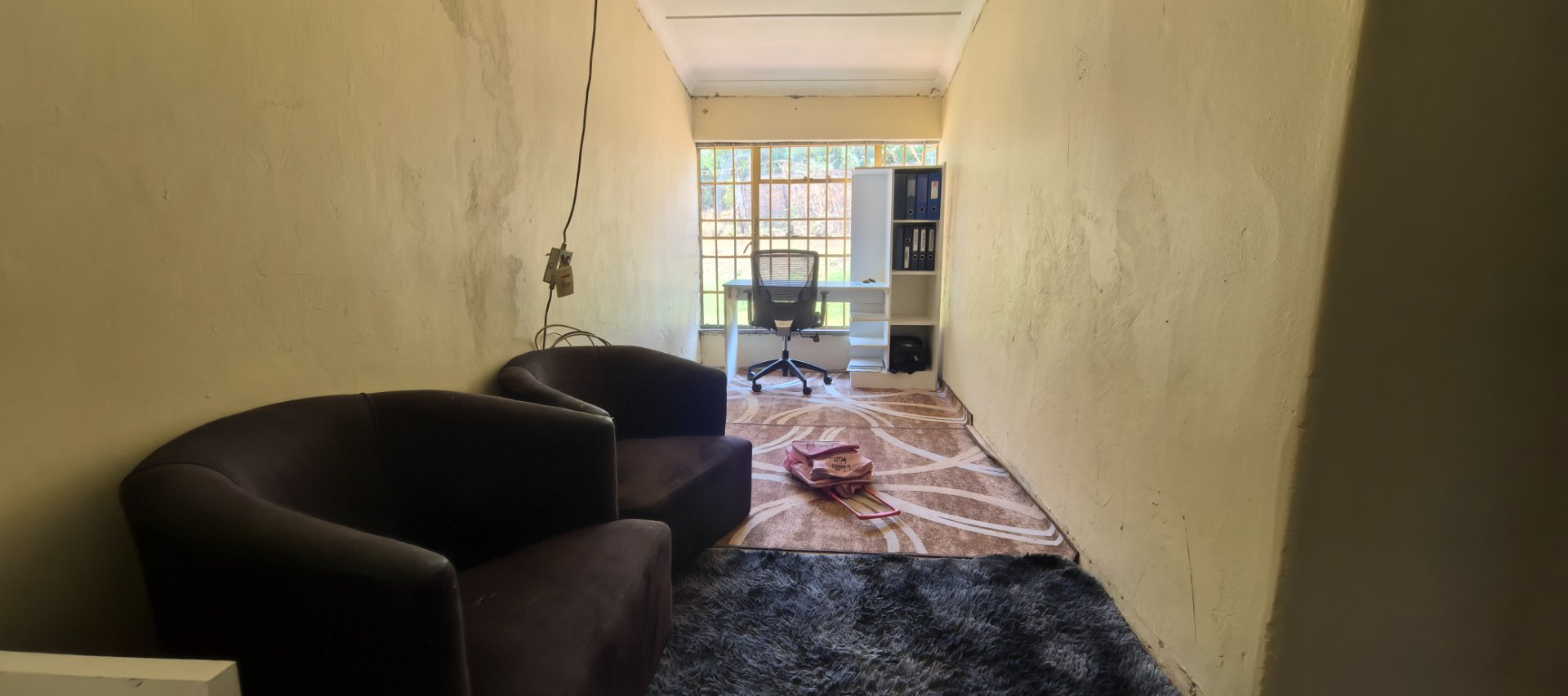 A sitting room and a garage.