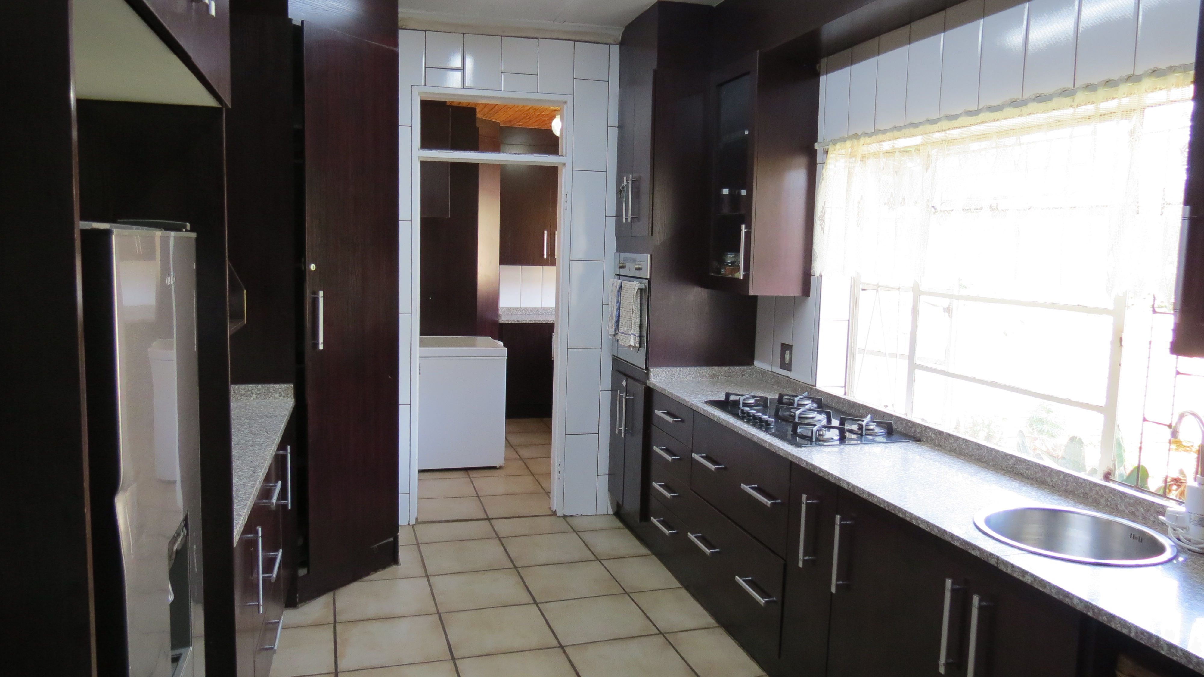 Renovated kitchen with gas hob and separate scullery/laundry