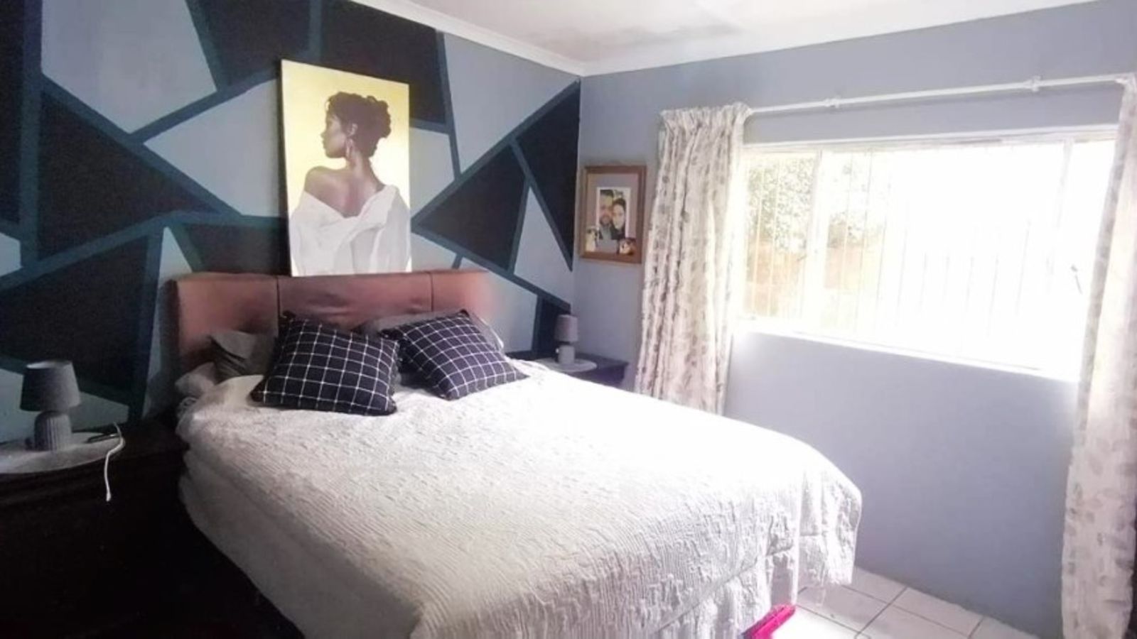 Down the passage, you'll discover a beautifully renovated, modern kitchen featuring sleek finishes, ample cupboard space, and a gas hob. A separate scullery and laundry add convenience to the heart of the home. The second bathroom has been stylishly updated with a large glass-panelled shower, modern vanity, and toilet, serving the two well-sized bedrooms.