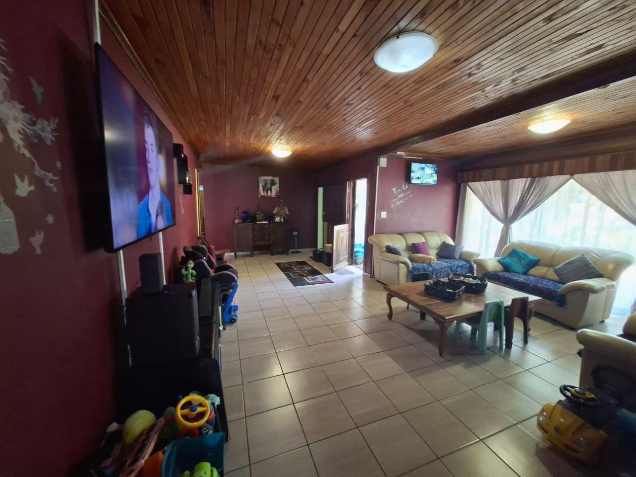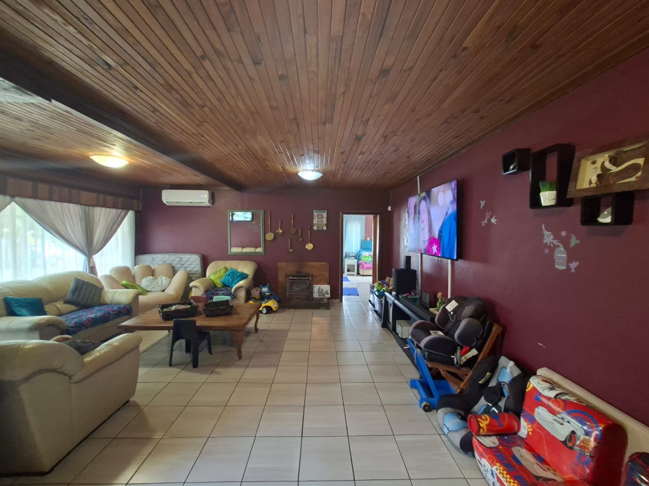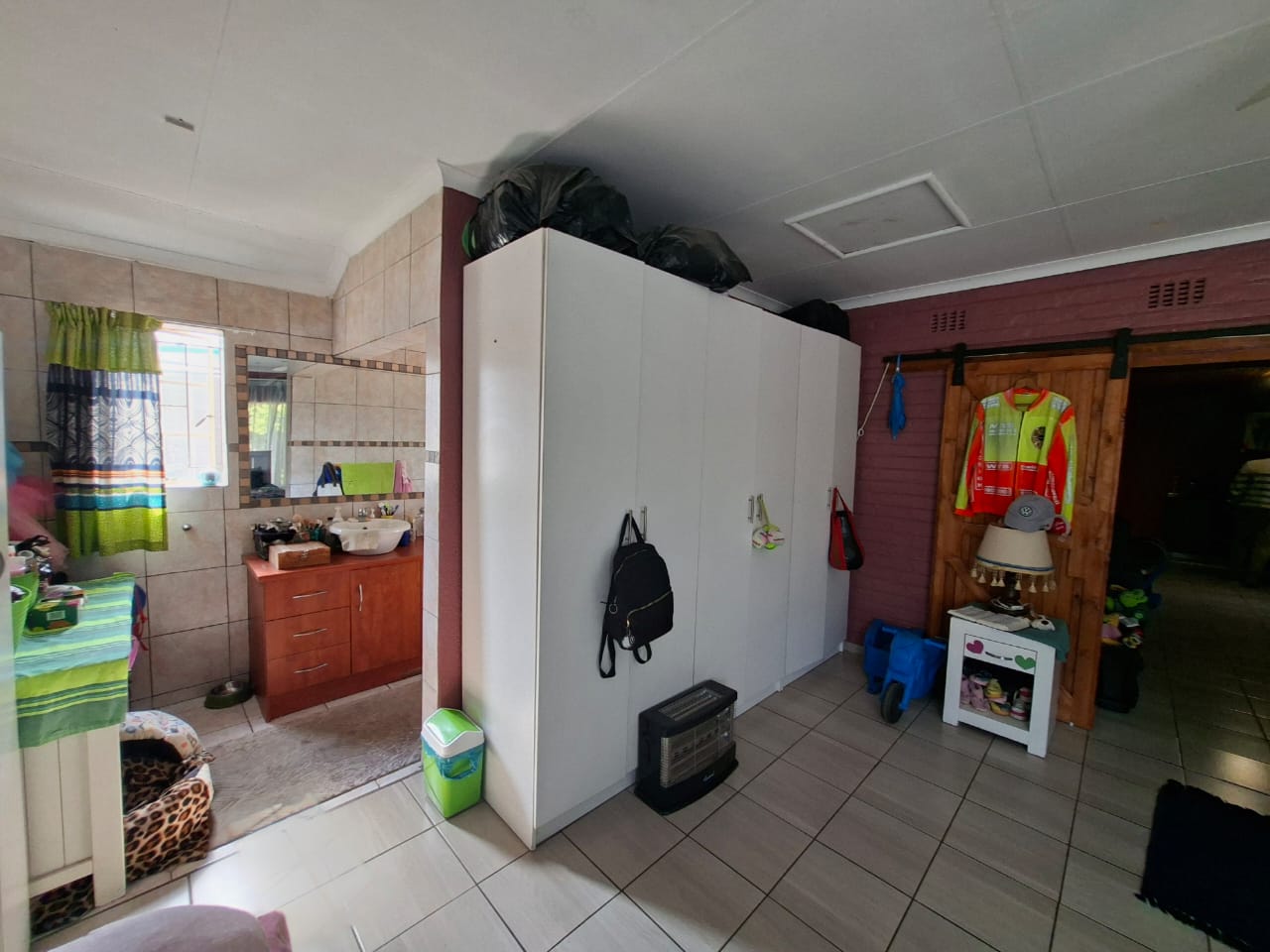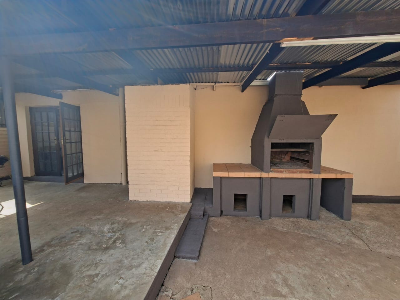 The outside entertainment area is a real showstopper – featuring a huge covered patio with a built-in braai and bar area, perfect for hosting friends and family all year round. The property also includes a storeroom or domestic quarters with a separate bathroom.