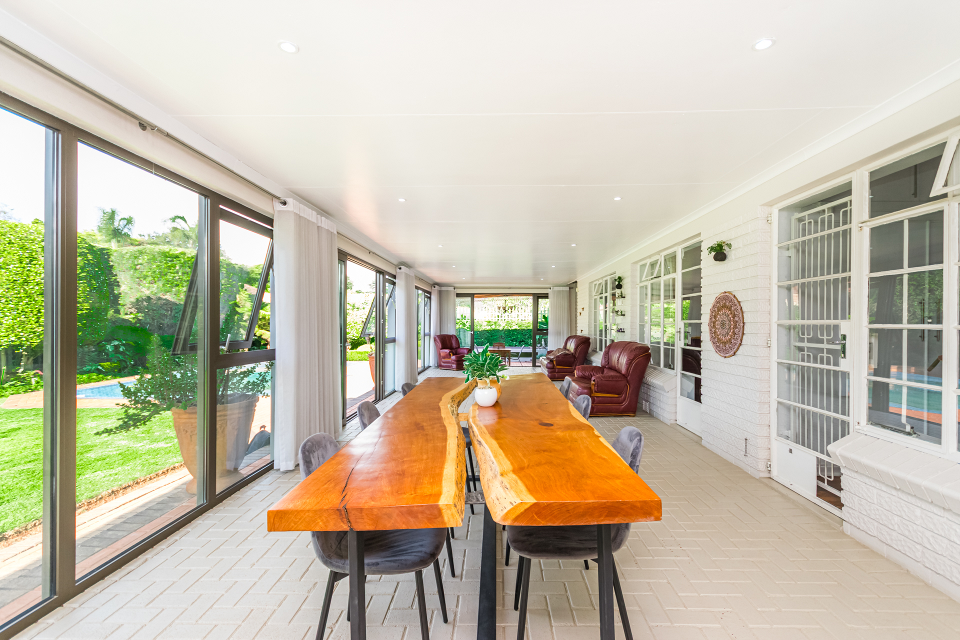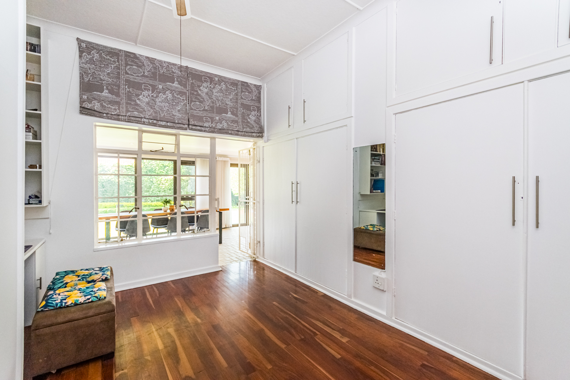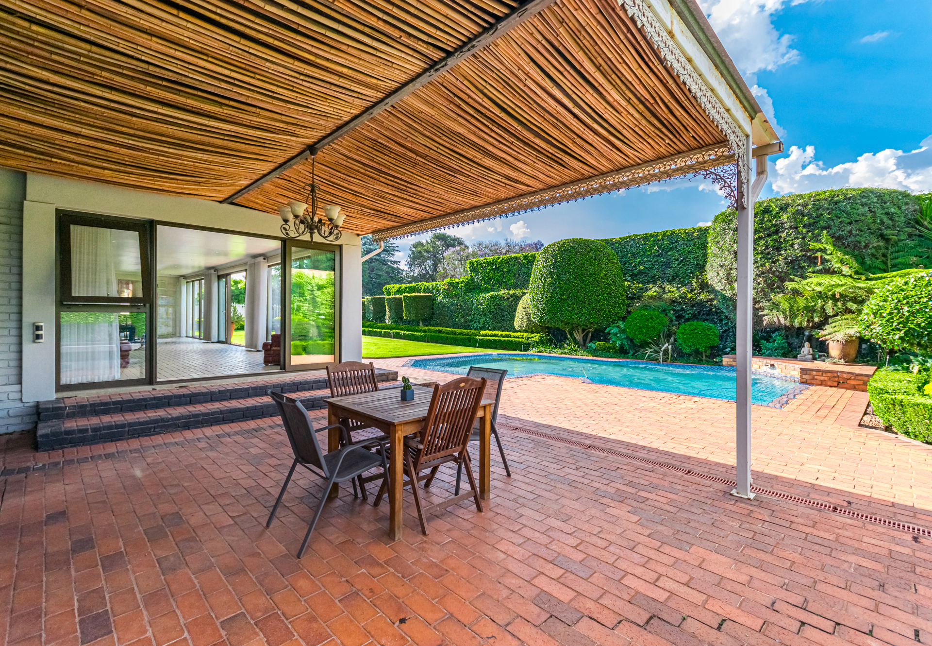 The outdoor entertainment area includes a built-in braai and overlooks the koi pond – adding a touch of tranquillity and charm – as well as the pool and beautifully maintained garden. It is the perfect spot for hosting family and friends.