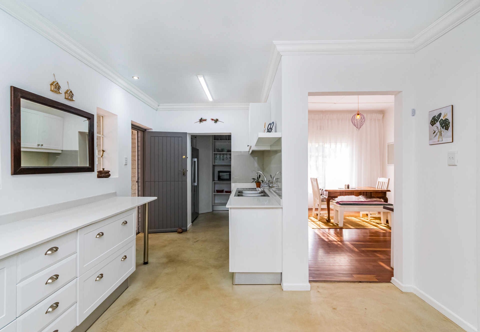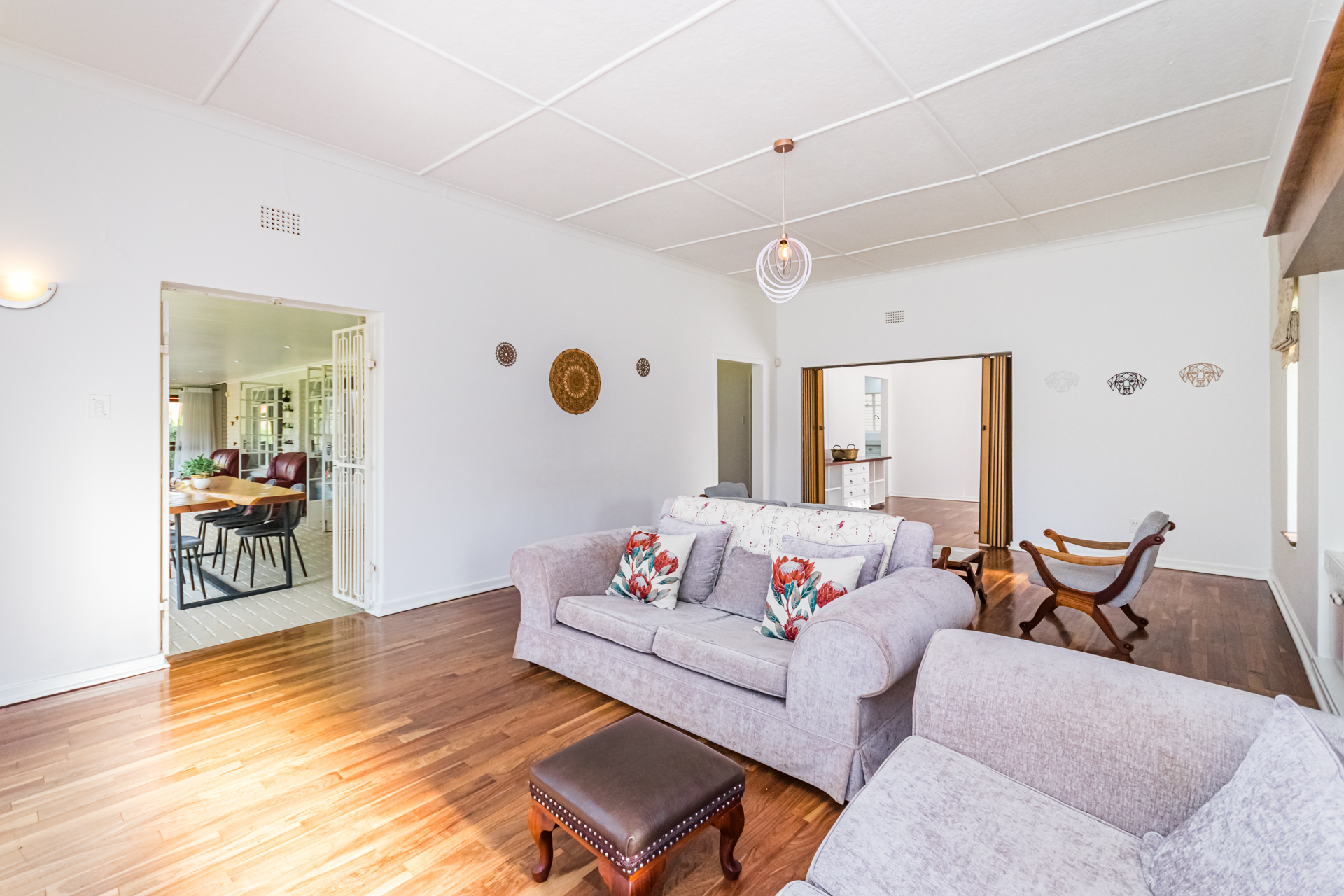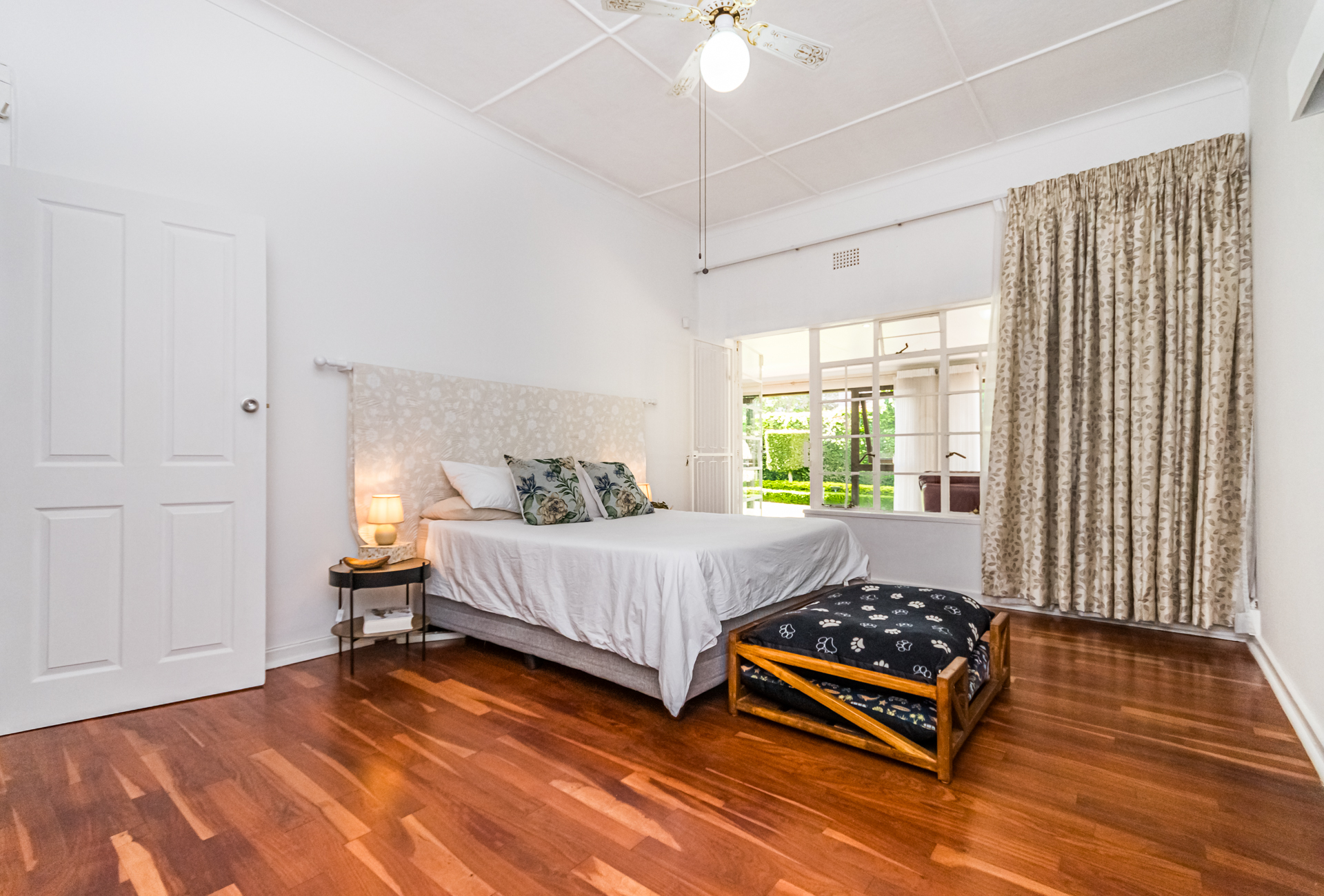 The main house offers generous space, featuring four beautiful bedrooms, with the main bedroom boasting its own en-suite bathroom. A second full bathroom serves the remaining bedrooms. Three of the bedrooms open onto the enclosed stoep with stacker doors, seamlessly connecting indoor living with the lush garden and entertainment area.