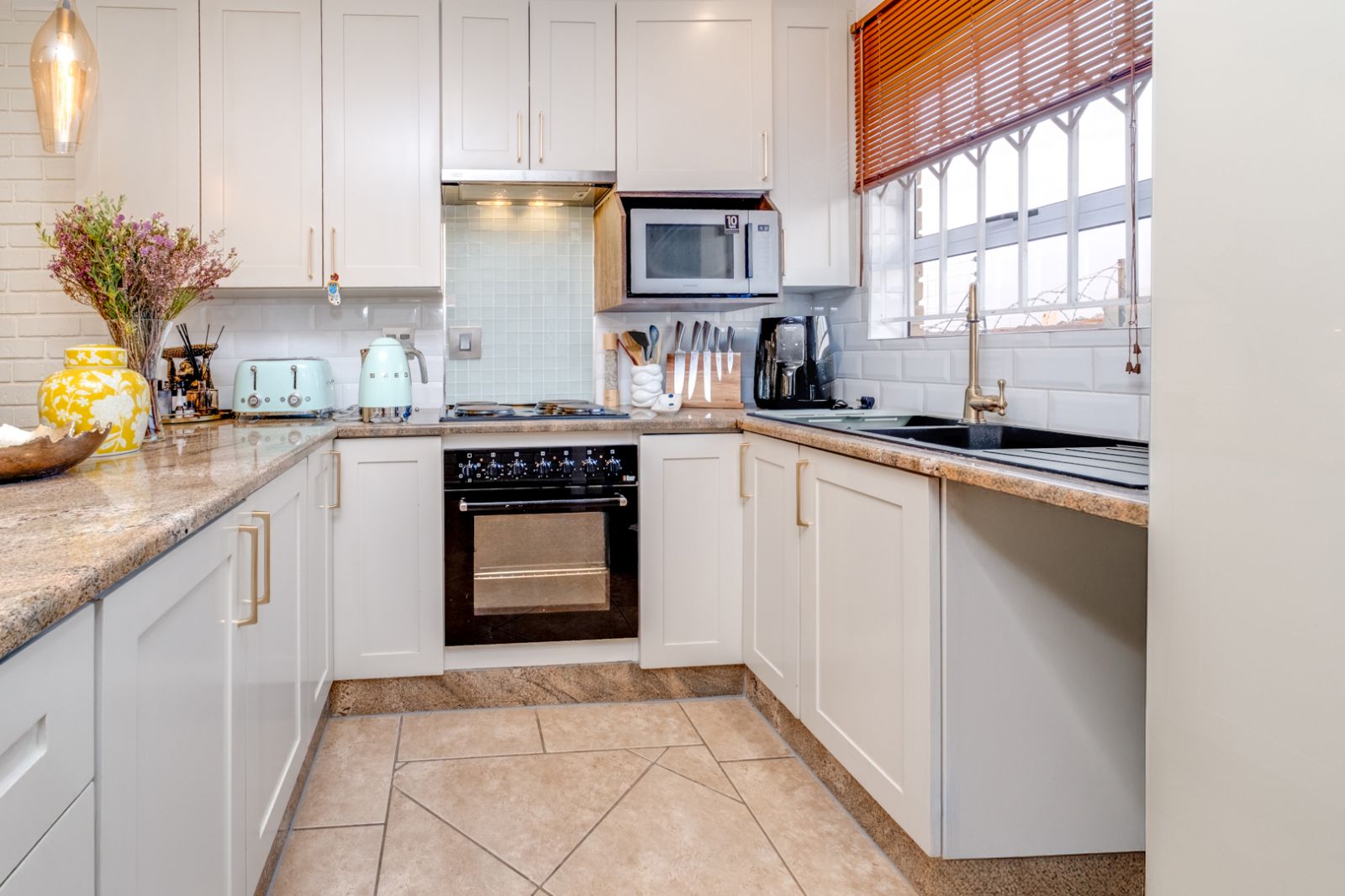 From the moment you step inside, you are greeted by a beautifully modern open-plan kitchen, complete with gleaming granite countertops, an under-counter oven and hob, and sleek tiled floors. This culinary haven flows seamlessly into a spacious lounge and dining area, ideal for both intimate family moments and stylish entertaining.