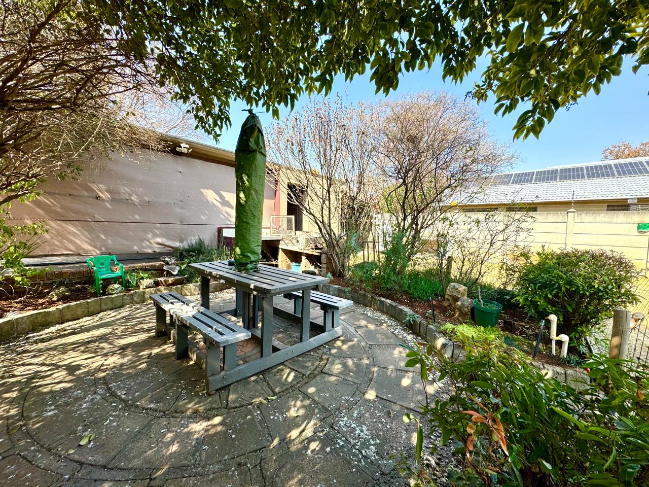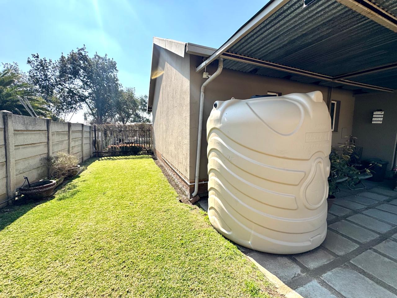 Parking includes one garage with a roll-up door and an additional carport for extra vehicles. For those who enjoy outdoor entertaining, there is a built-in braai (barbecue) area—ideal for hosting guests. A JoJo tank with a pump is installed to help with water storage and supply during dry months.