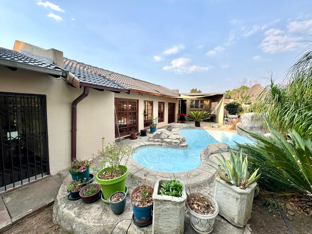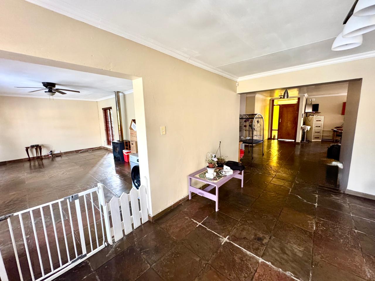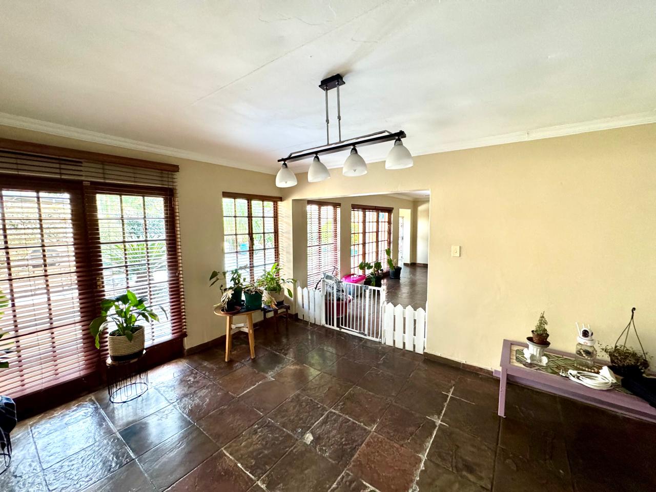 Living areas are expansive and well thought out. The first lounge features a cozy fireplace, perfect for winter evenings. The second living area opens into a spacious indoor braai and entertainment area, complete with a built in bar topped with granite. This space extends to a patio overlooking a heated swimming pool (currently being repainted), creating a seamless blend of indoor and outdoor living for year round enjoyment.