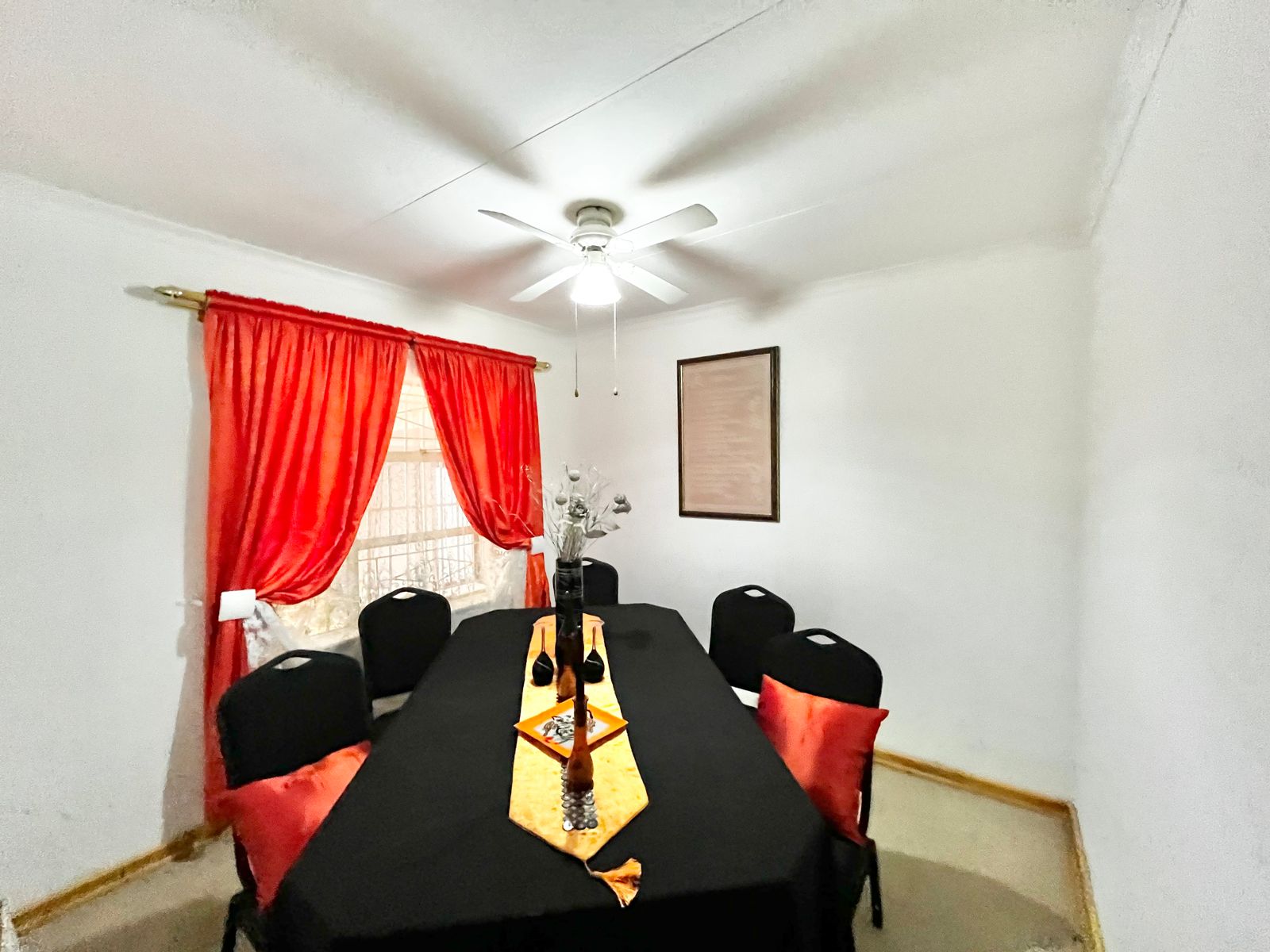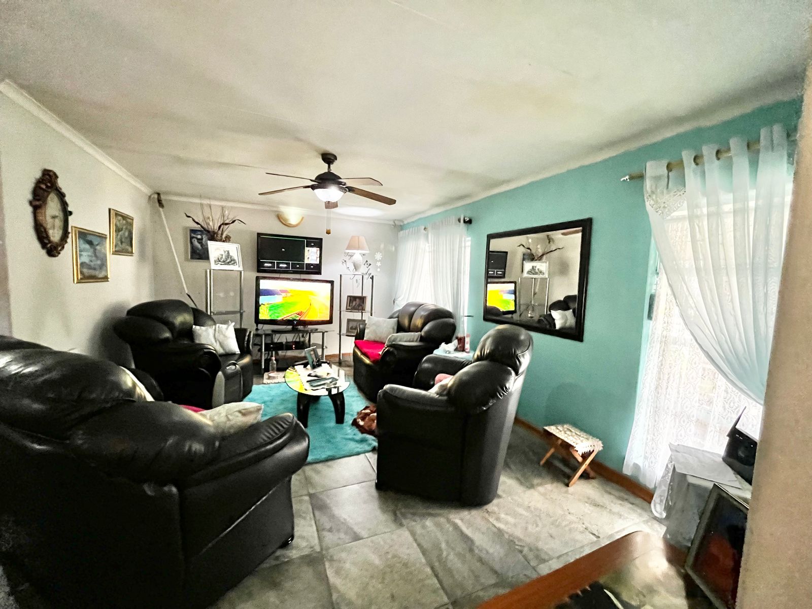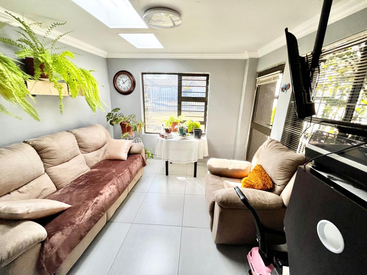 Upon entering, you’re welcomed by a small entrance hall leading into a spacious tiled lounge and a separate dining area with wall-to-wall carpeting in excellent condition.