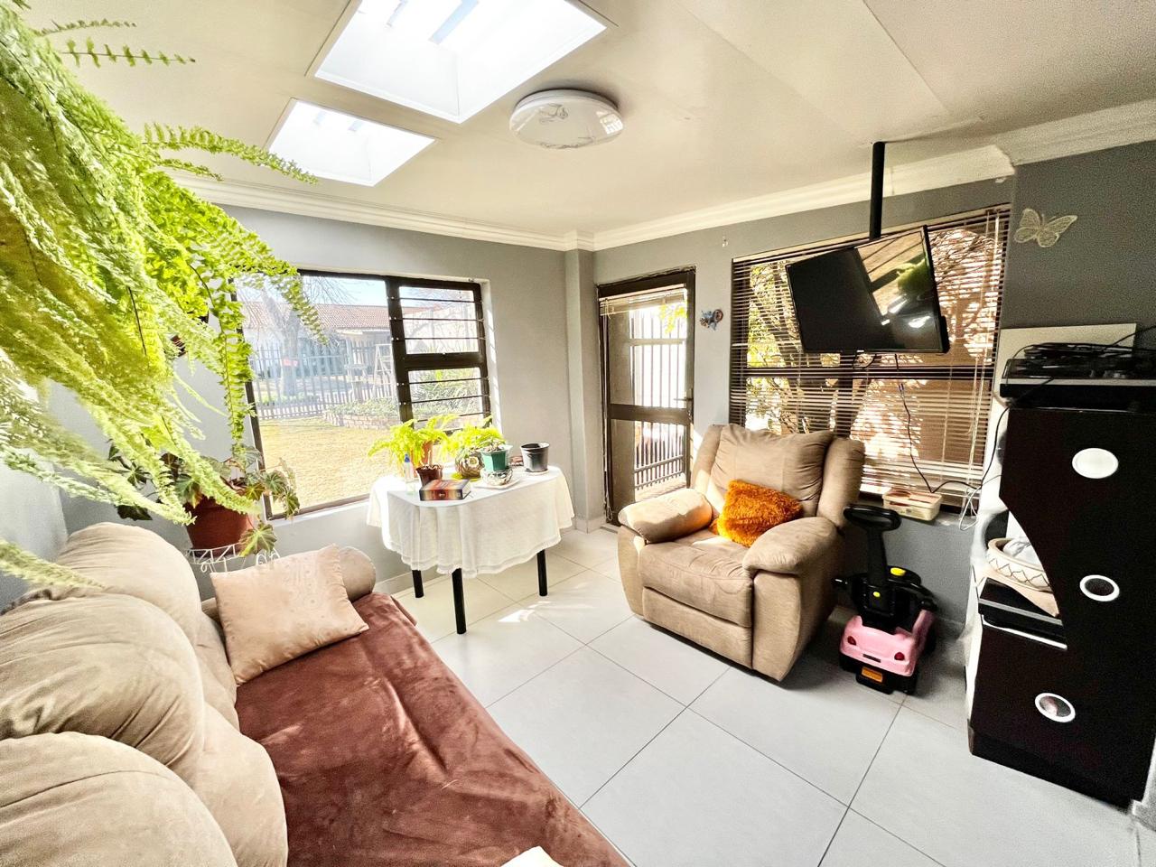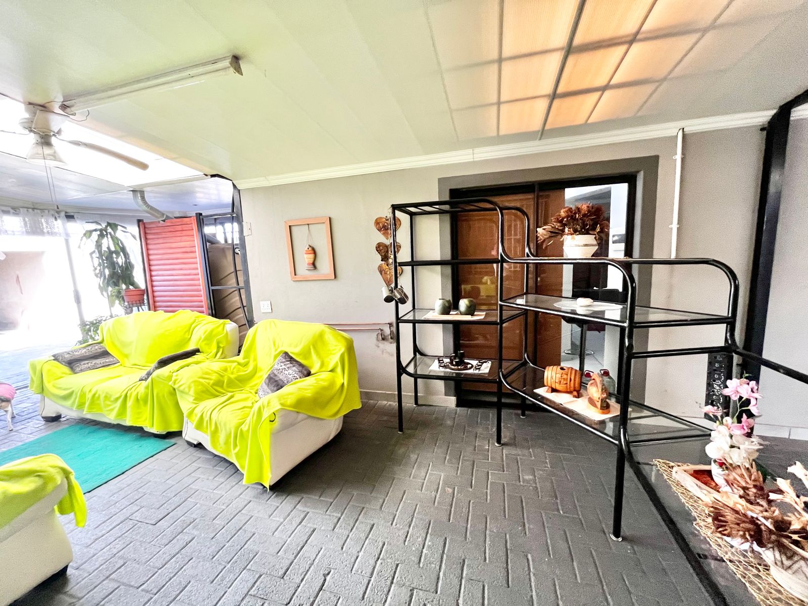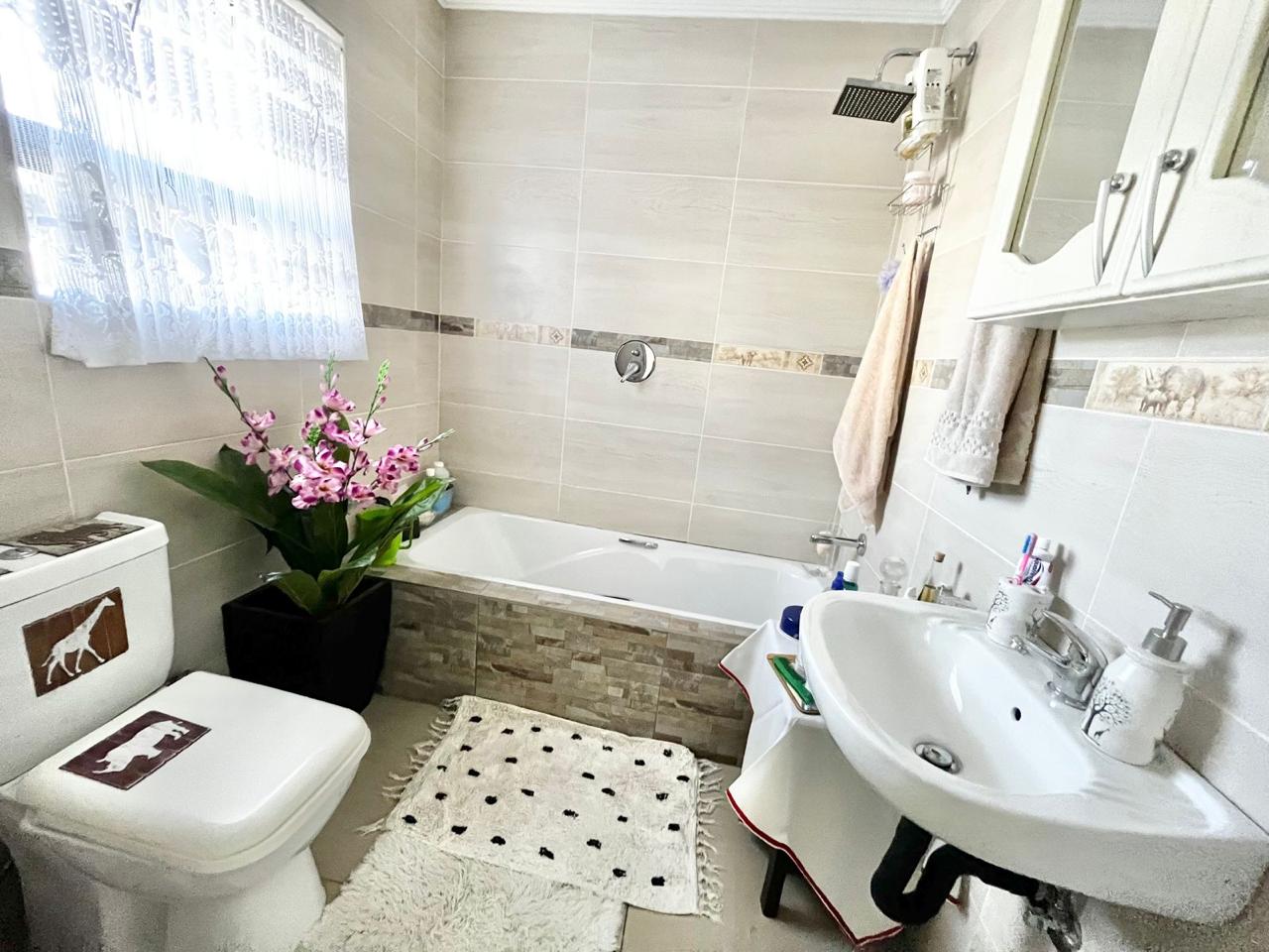 Upon entering, you’re welcomed by a small entrance hall leading into a spacious tiled lounge and a separate dining area with wall-to-wall carpeting in excellent condition.