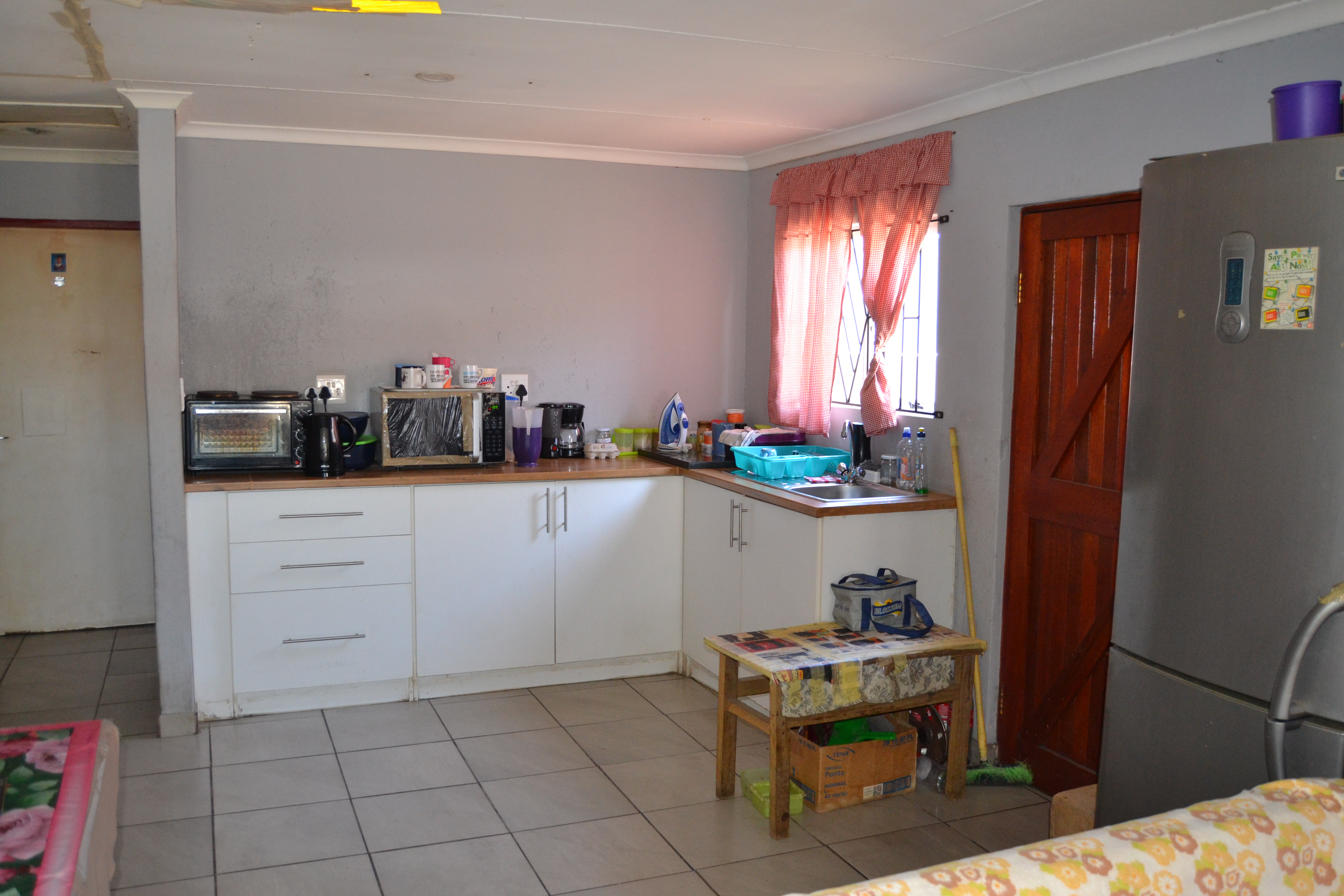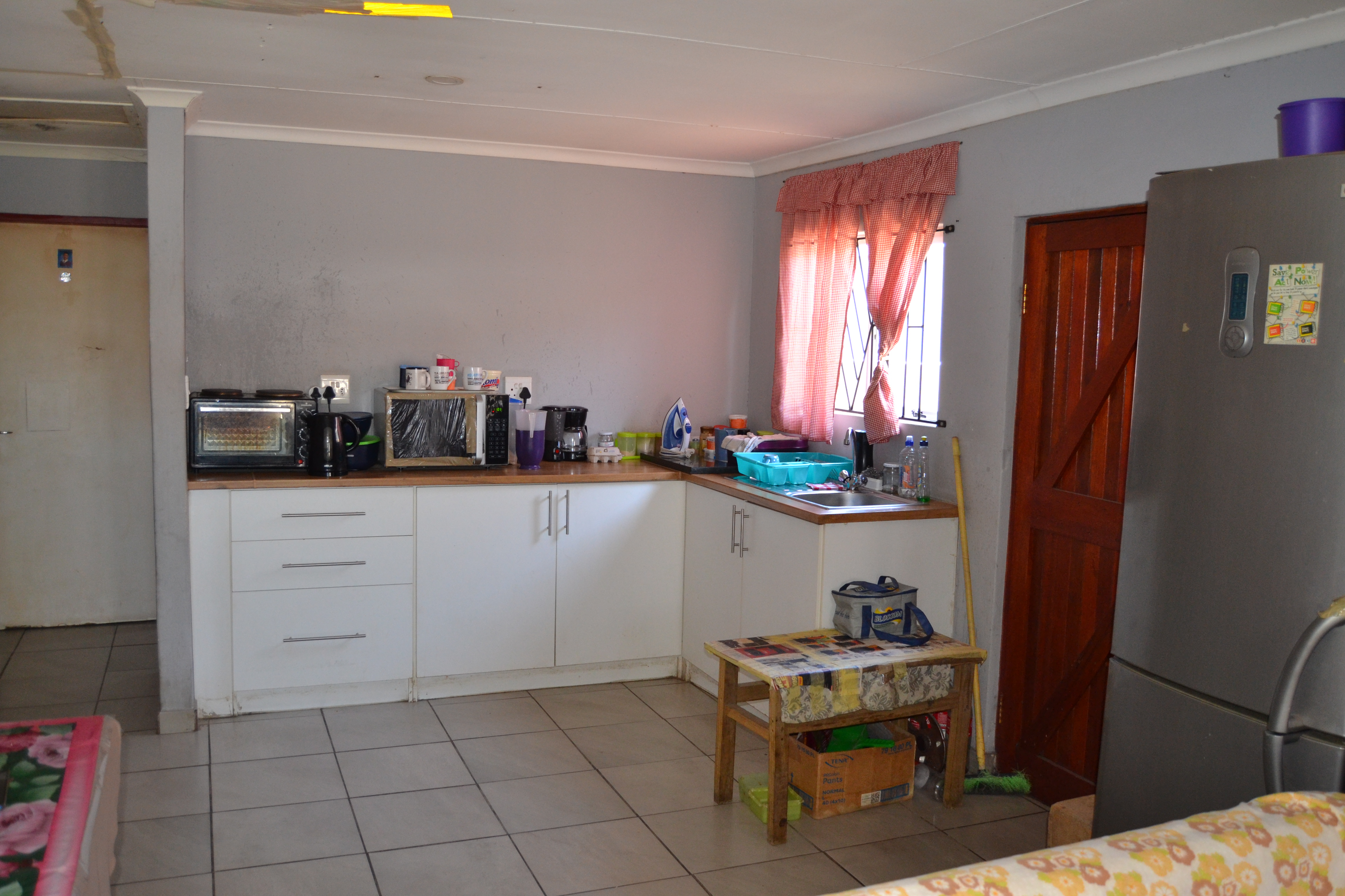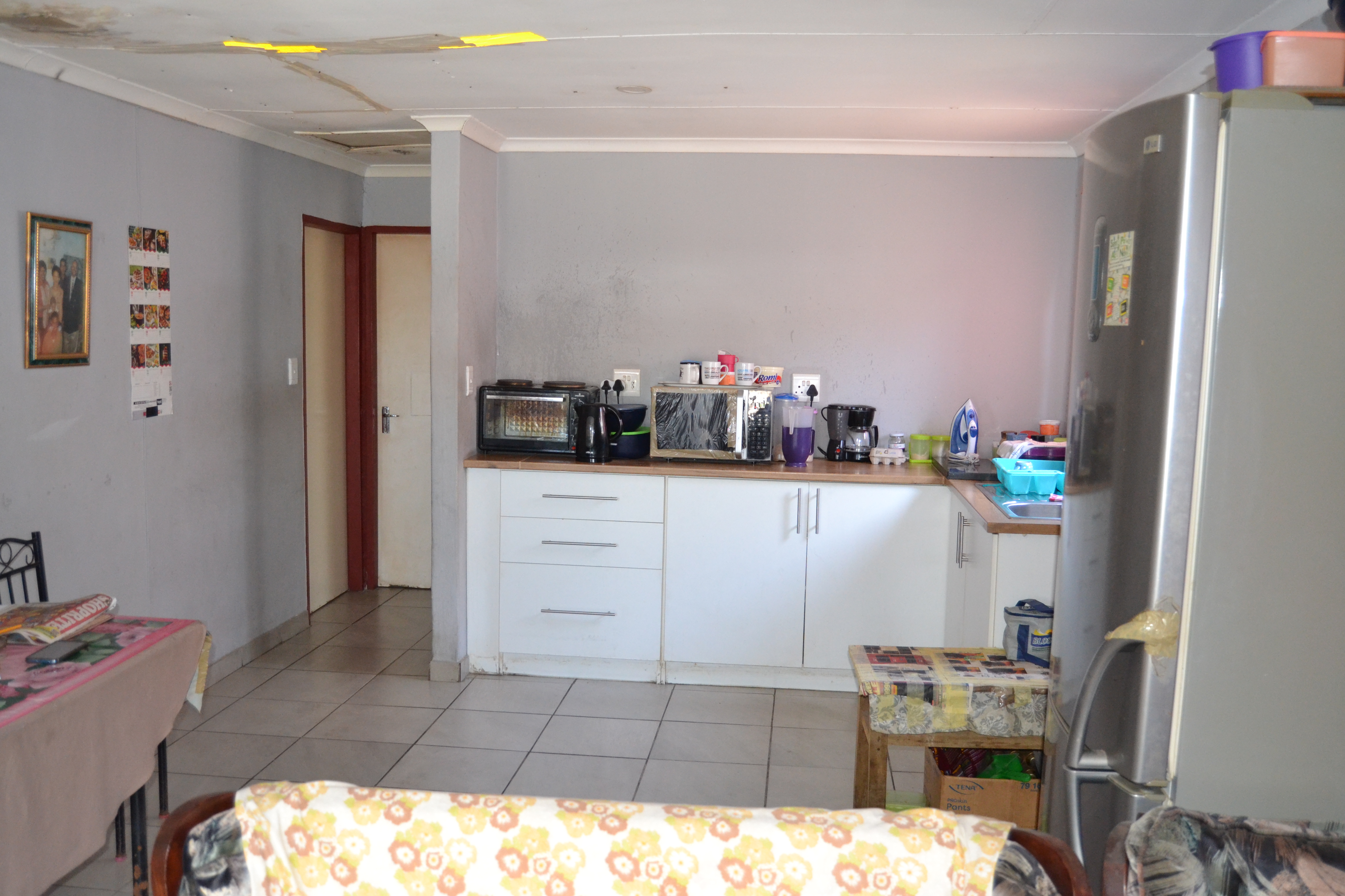 Neat 2-bedroom home featuring an open-plan kitchen and lounge, plus one full bathroom. The property includes an attached carport, is fully fenced, and fitted with burglar bars. It does need some TLC, but is located in a quiet street and peaceful area. Call me now to arrange a viewing!