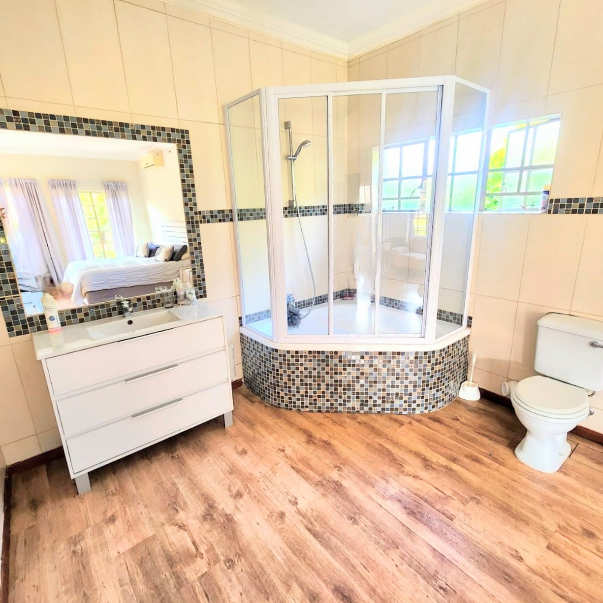 Located in the scenic Kungwini Country Estate near Bronkhorstspruit Dam, this recently renovated house offers both practicality and convenience. It features four bedrooms, with air-conditioning in three of them, as well as three bathrooms. The property includes solar geysers, a boma for gatherings, and a jacuzzi for relaxation. There are also two balconies, one of which is enclosed with a sail for added functionality. The house is within walking distance of communal boat launch facilities and picnic spots, making it a great option for those who enjoy outdoor activities. This property provides all the essentials for comfortable living in a peaceful setting. Contact us today to schedule a viewing.