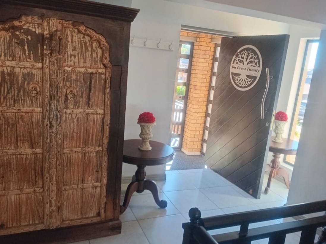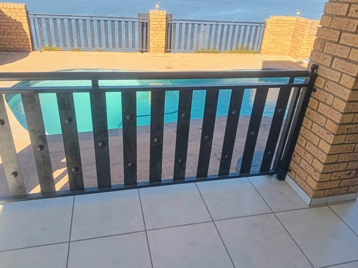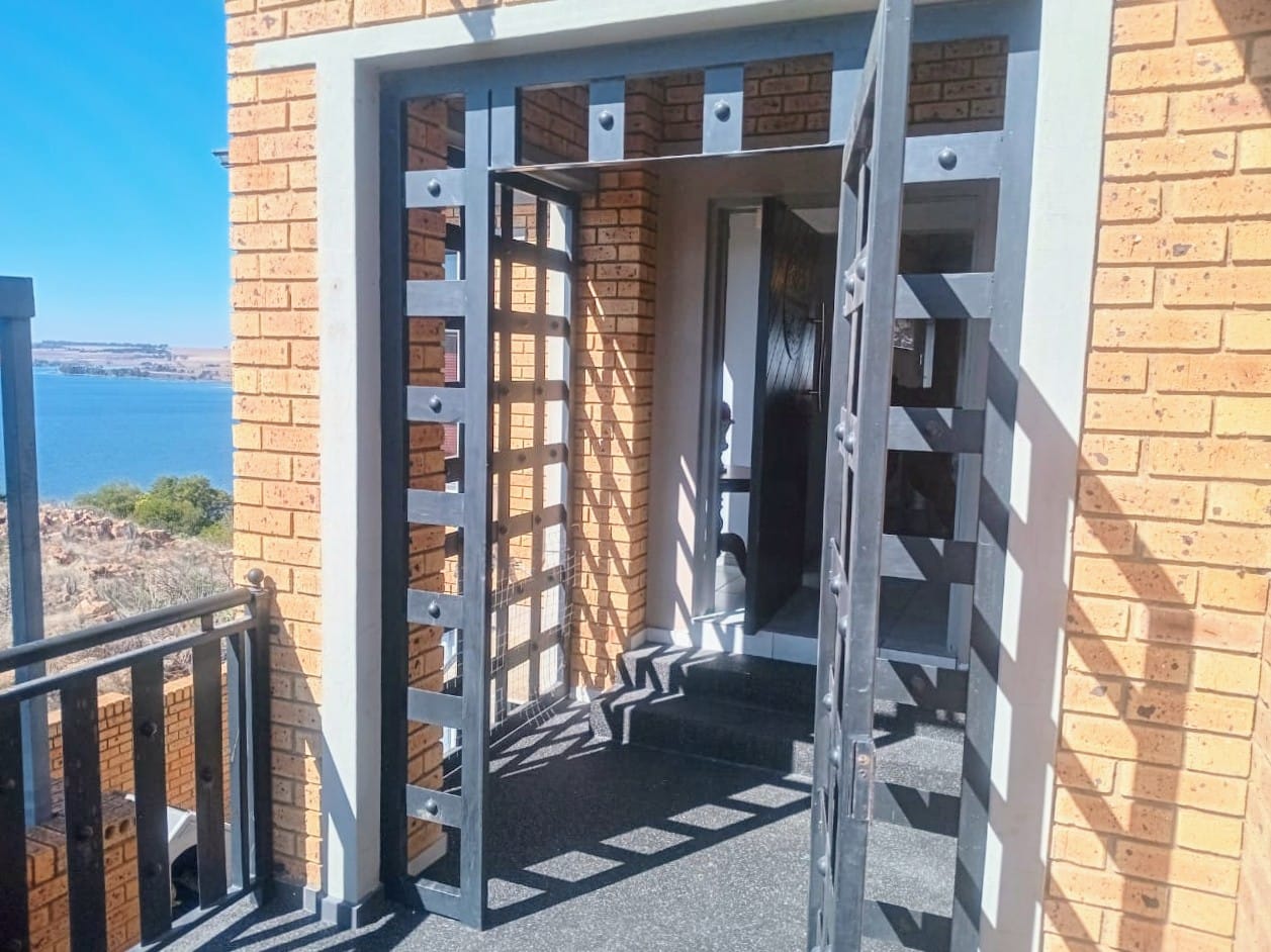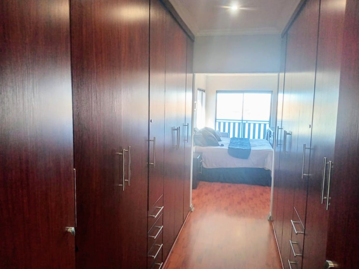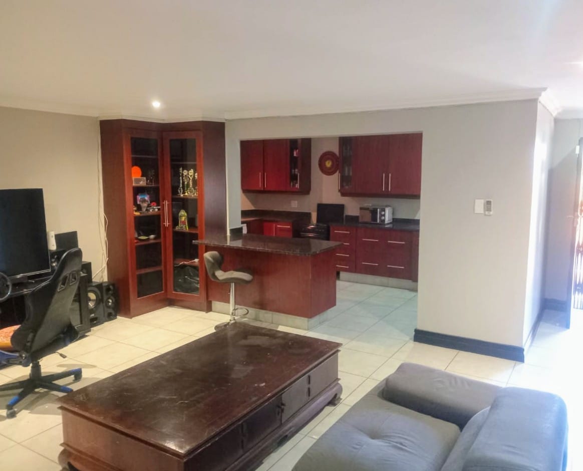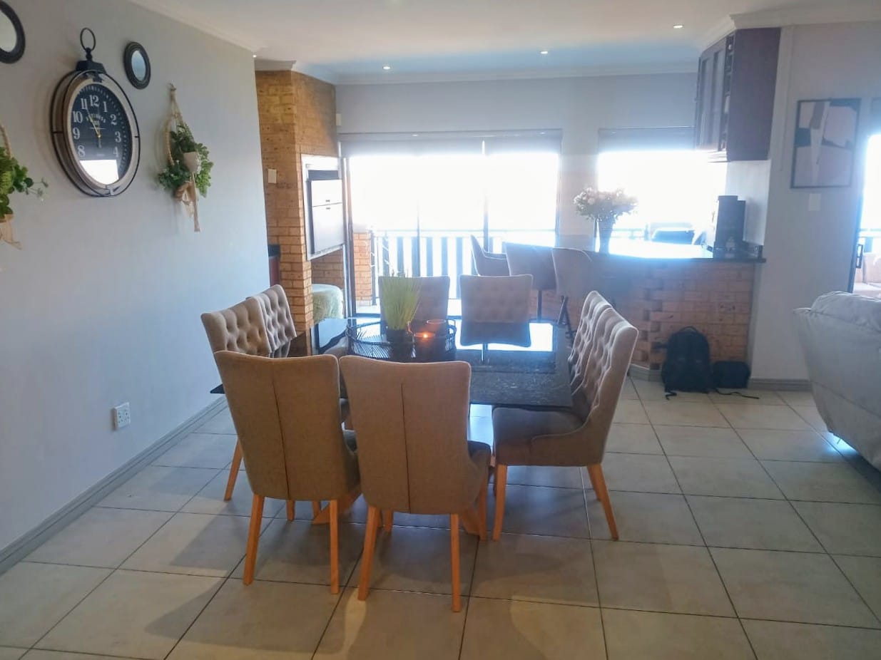 This double-story home in Kungwini Ranch offers practical comfort with a scenic dam view. The property includes four bedrooms and four-and-a-half bathrooms, with each bedroom featuring its own en-suite. Upstairs, the main bedroom has a private balcony overlooking the Bronkhorstspruit Dam, a walk-in closet, and a full bathroom with double basins. Two more bedrooms on the top floor share a balcony and each has its own en-suite bathroom. A guest toilet is also located upstairs. The kitchen is fitted with a gas stove, eye-level oven, extractor fan, granite countertops, prep bowl, breakfast nook, and a separate scullery. The open-plan lounge and dining area lead to a built-in bar and braai, offering a functional space for everyday living and occasional entertaining. On the ground floor, there is a bachelor flat with its own entrance, kitchenette, bedroom, bathroom, and lounge — suitable for guests or extended family. Outside, the property features a swimming pool with dam views and a built-in pizza oven. The house is equipped with air-conditioning, solar power, and an inverter system. Residents of Kungwini Ranch have access to communal facilities including a boat launch, fishing area, and picnic spots. This home offers a balanced combination of space, utility, and location. Contact me today to schedule a viewing.