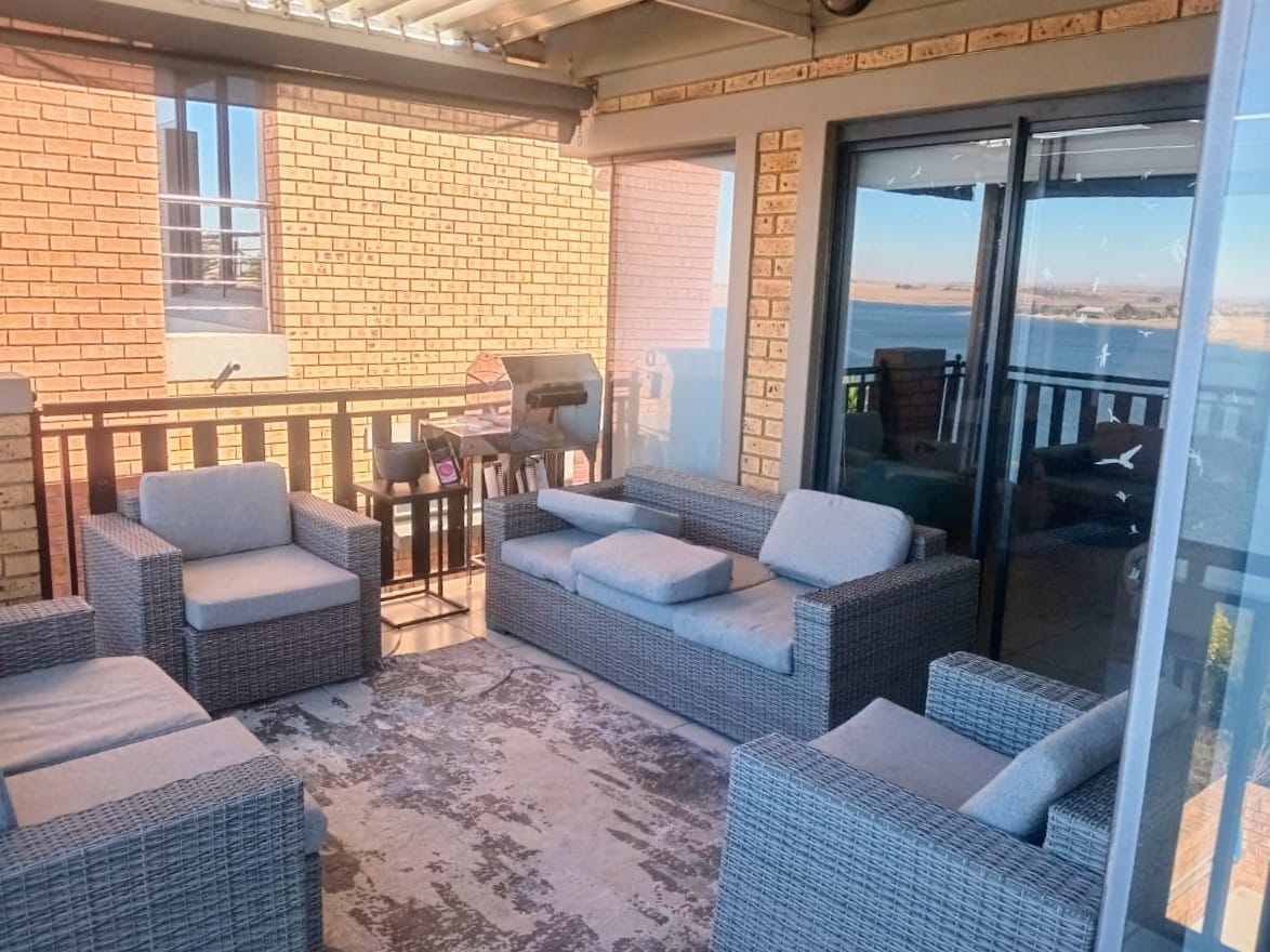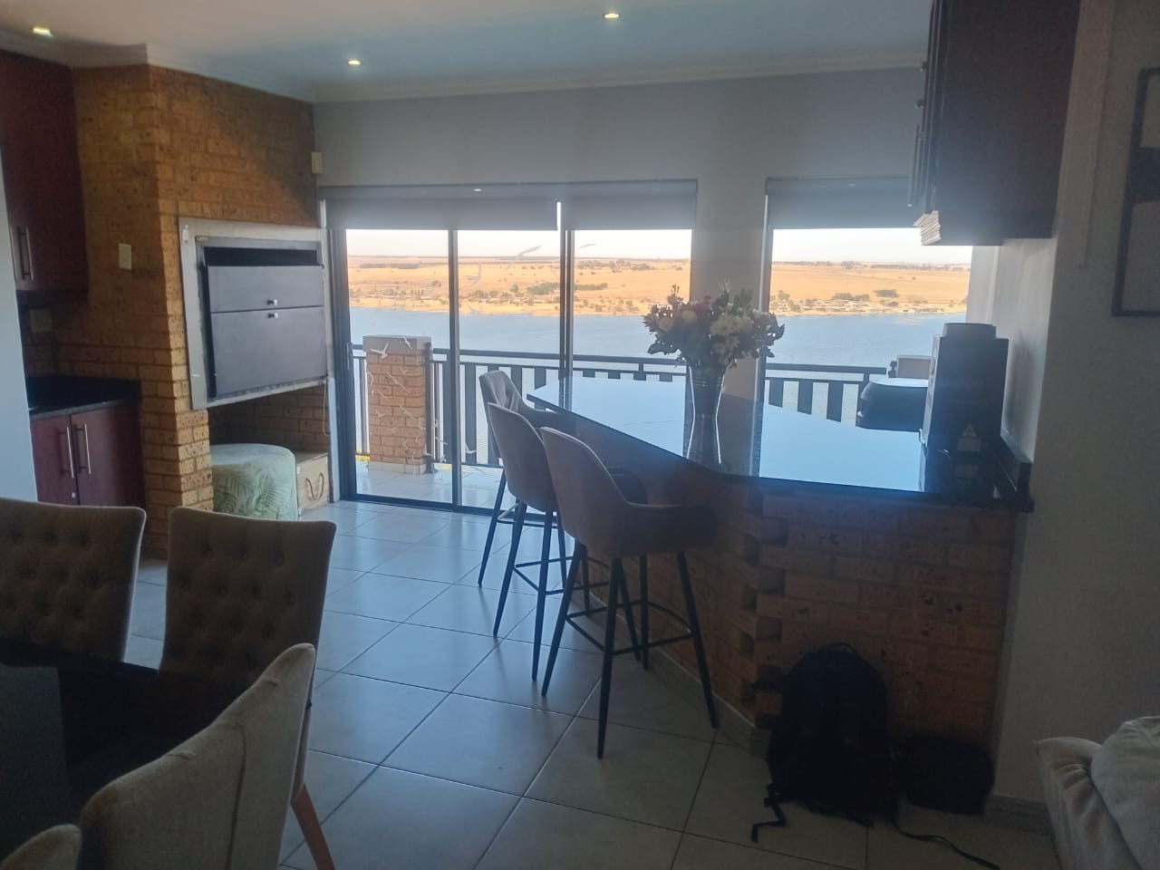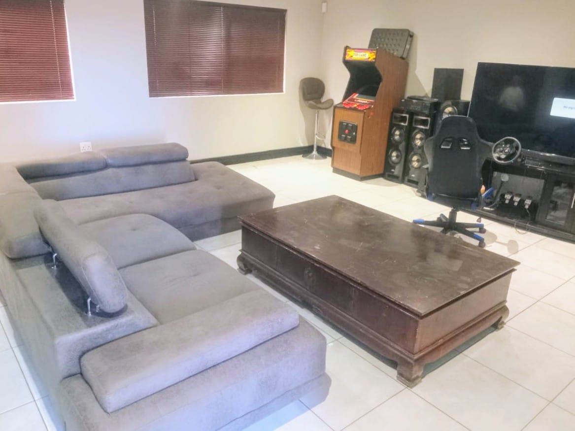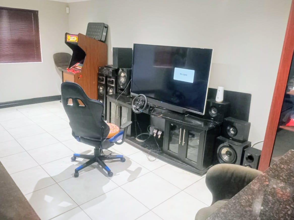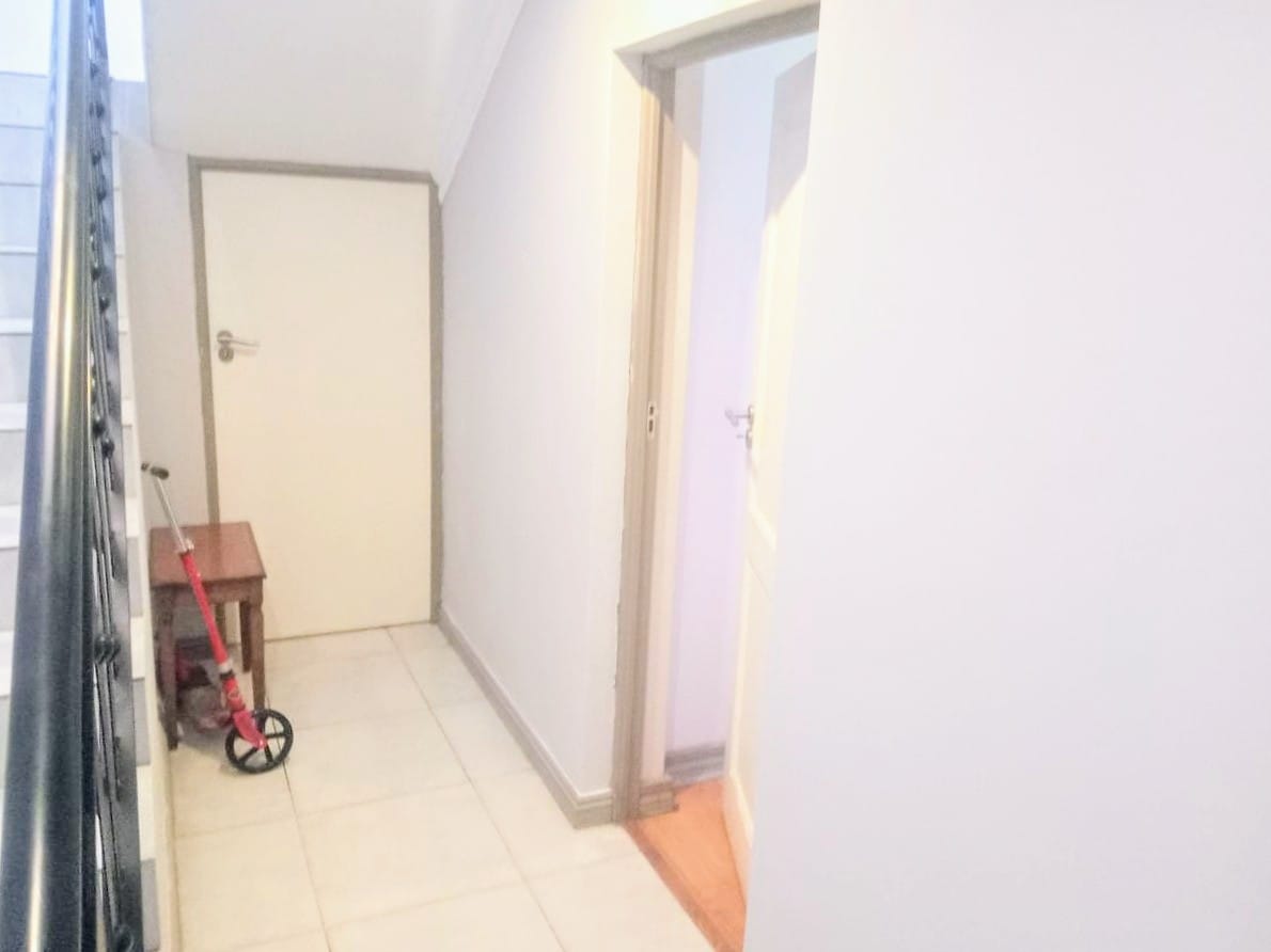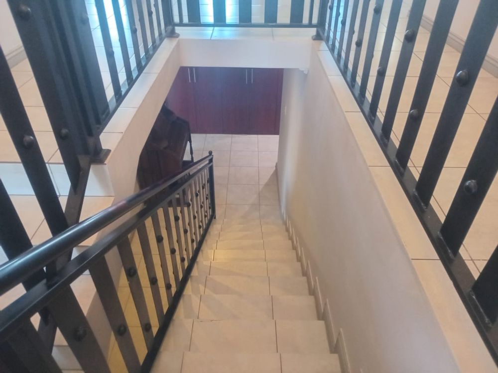 This double-story home in Kungwini Ranch offers practical comfort with a scenic dam view. The property includes four bedrooms and four-and-a-half bathrooms, with each bedroom featuring its own en-suite. Upstairs, the main bedroom has a private balcony overlooking the Bronkhorstspruit Dam, a walk-in closet, and a full bathroom with double basins. Two more bedrooms on the top floor share a balcony and each has its own en-suite bathroom. A guest toilet is also located upstairs. The kitchen is fitted with a gas stove, eye-level oven, extractor fan, granite countertops, prep bowl, breakfast nook, and a separate scullery. The open-plan lounge and dining area lead to a built-in bar and braai, offering a functional space for everyday living and occasional entertaining. On the ground floor, there is a bachelor flat with its own entrance, kitchenette, bedroom, bathroom, and lounge — suitable for guests or extended family. Outside, the property features a swimming pool with dam views and a built-in pizza oven. The house is equipped with air-conditioning, solar power, and an inverter system. Residents of Kungwini Ranch have access to communal facilities including a boat launch, fishing area, and picnic spots. This home offers a balanced combination of space, utility, and location. Contact me today to schedule a viewing.