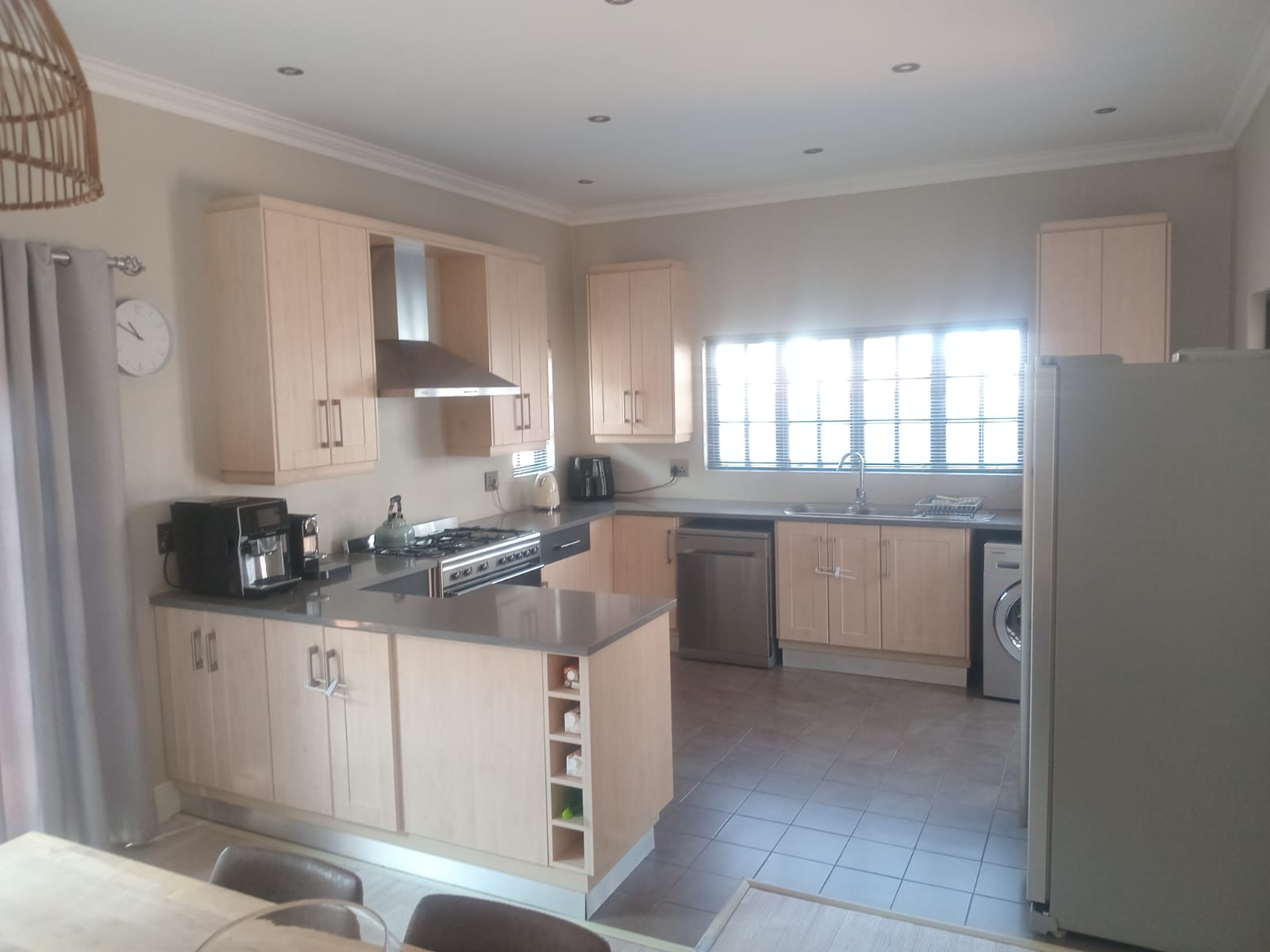 This inviting home in Kungwini Manor features 3 spacious bedrooms and 2 full bathrooms, offering comfort, privacy, and a seamless flow of living spaces. Upon entering through the front door, you step into a warm and welcoming lounge with a gas fireplace, perfect for cozy evenings. The lounge flows effortlessly into the dining room, which in turn leads to a well-equipped kitchen. The kitchen boasts a full SMEG gas stove, extractor fan, dishwasher connection, washing machine connection, and a breakfast nook—ideal for relaxed mornings or casual meals. A gas geyser ensures efficient hot water throughout the home.
