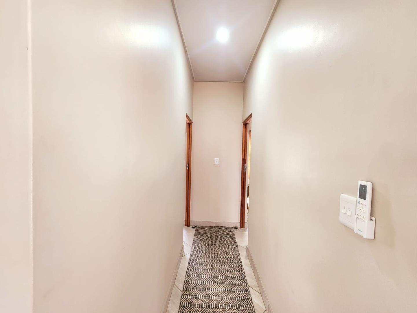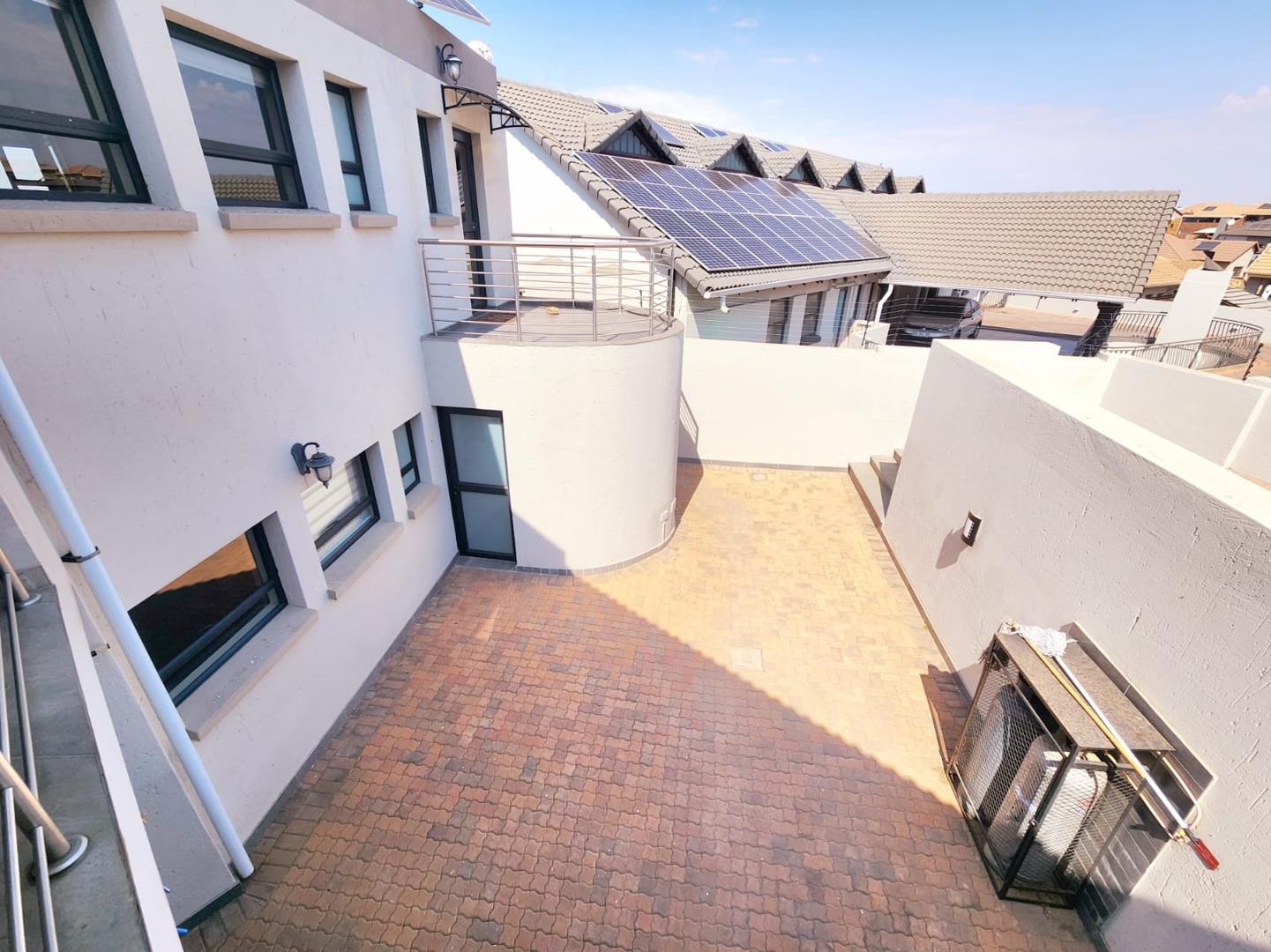 Discover the elegance and comfort of this newly built family home in Kungwini Manor Estate. Designed with ample entertainment space, it is perfect for families with children and pets. The open-plan layout seamlessly connects the kitchen, living, and dining areas, extending to a veranda equipped with a barbecue area and offering tranquil dam views. Each of the four bedrooms is outfitted with built-in wardrobes and en-suite bathrooms, ensuring convenience and privacy for every family member. Eco-conscious features, including solar panels and a borehole, make off-grid living a reality. Year-round comfort is guaranteed with a heated swimming pool, a barbecue area, and a bar, creating the perfect atmosphere for relaxation and leisure. Situated in a secure estate with exclusive dam access, this home is ideally located just a 30-minute drive from Pretoria or Witbank, with nearby amenities such as shopping centers, restaurants, and schools. Experience contemporary luxury and sustainable living—call today to schedule your private viewing.