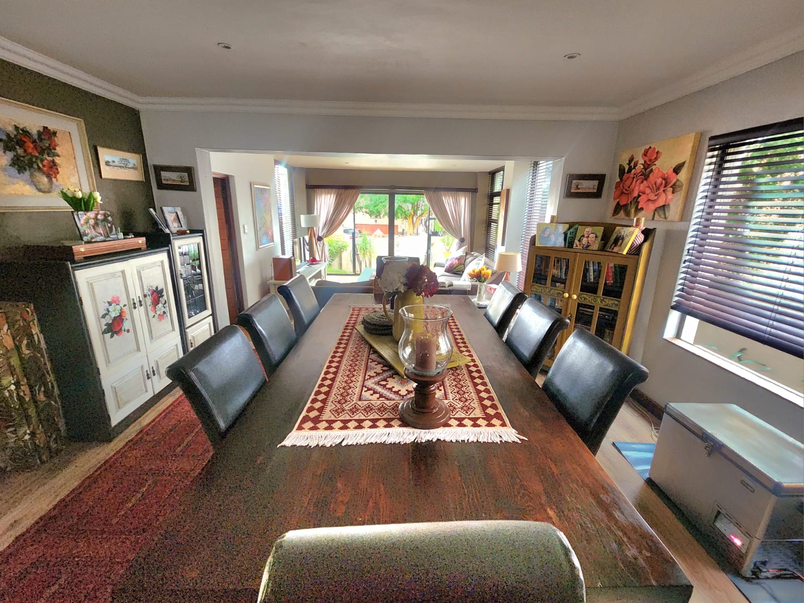 Discover tranquility in Kungwini Manor Estate with this elegant 3-bedroom home. It features a well-equipped kitchen, open-plan dining, cozy living spaces, and two en-suite bedrooms downstairs. The upstairs lounge includes a study nook, indoor braai area, and an undercover balcony with dam views.
