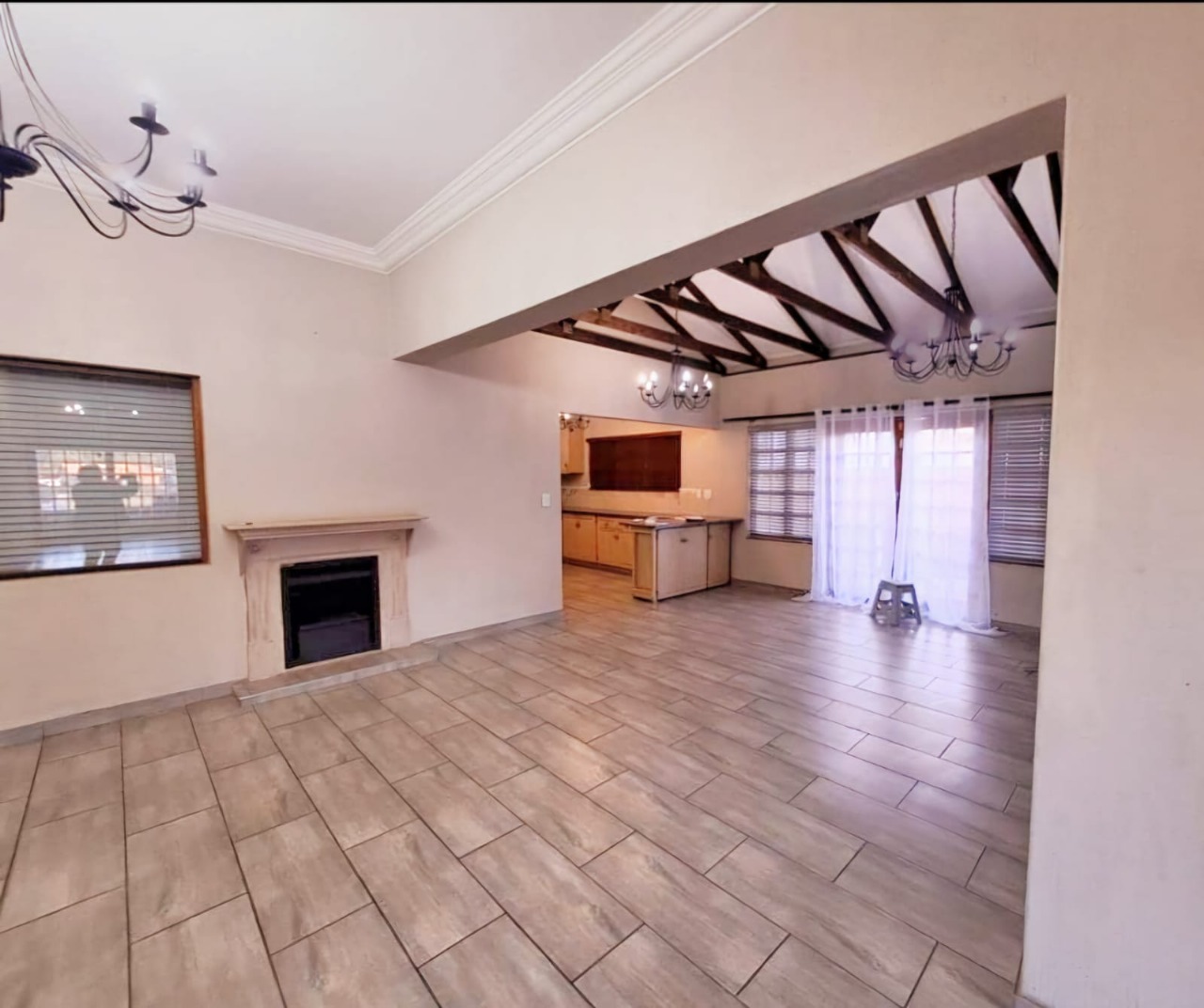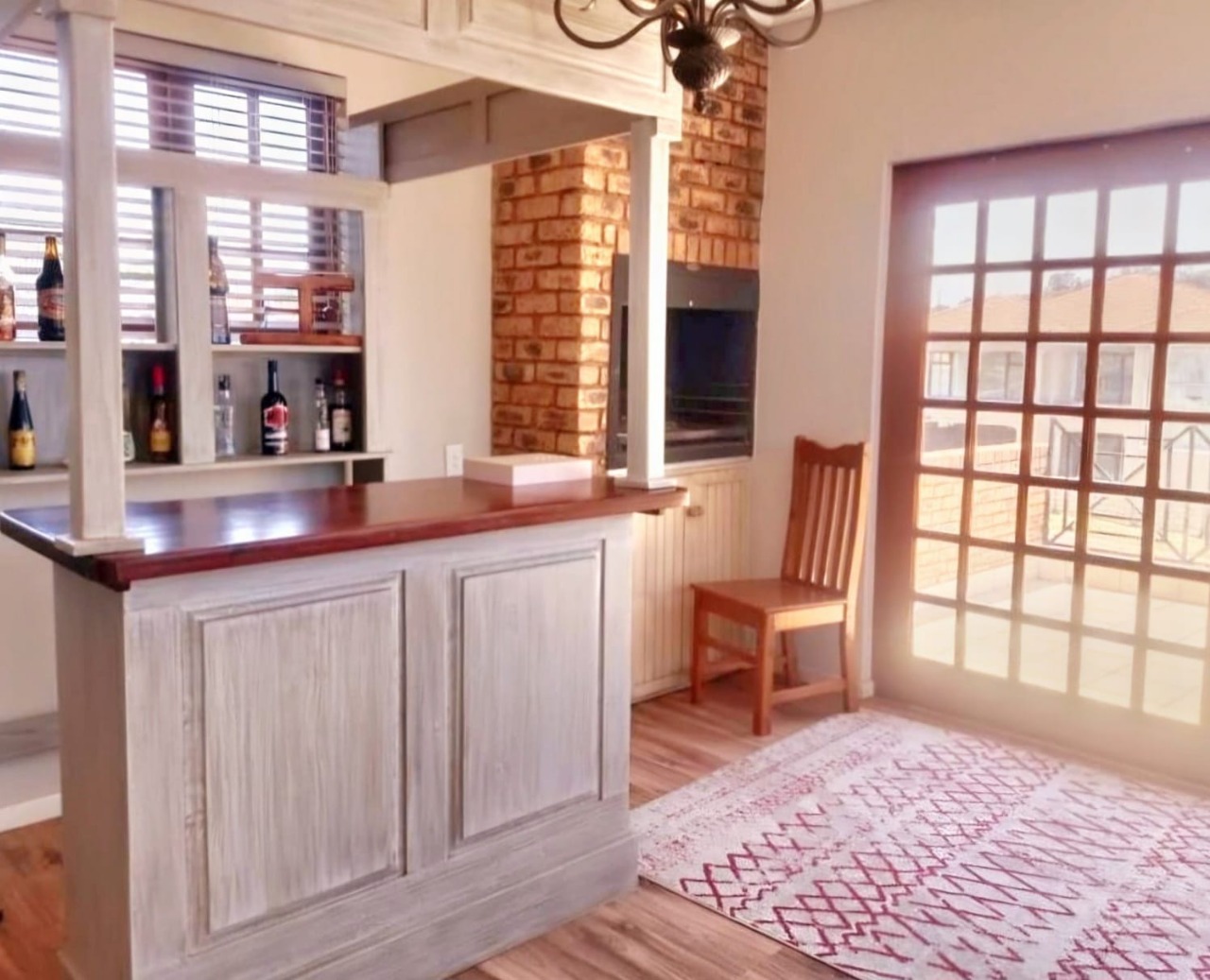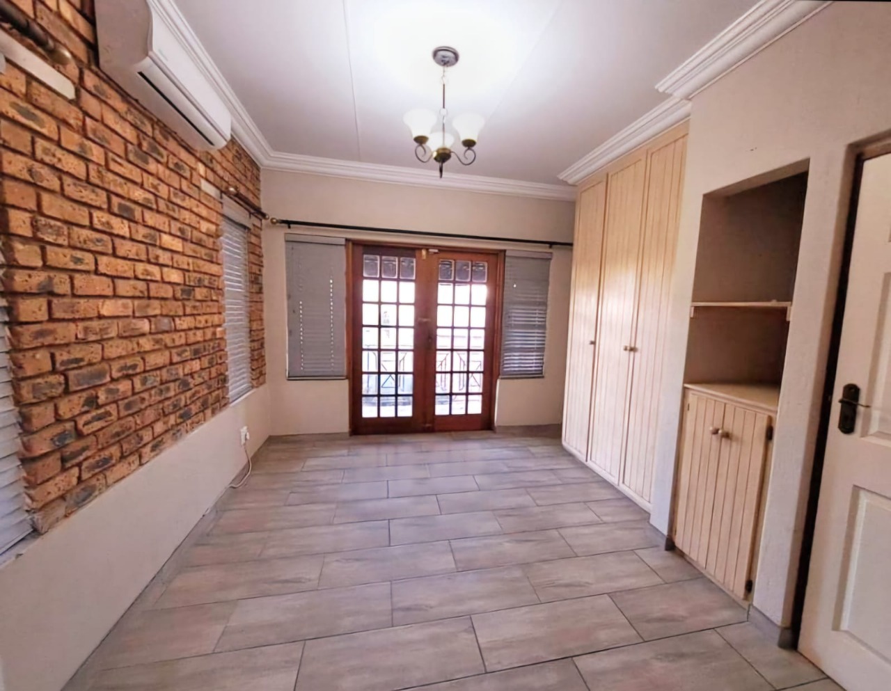Upstairs, entertainment takes centre stage with a built-in bar and entertainment room, opening onto a balcony with breath-taking views of Bronkhorstspruit Dam. This level also features an additional ensuite bedroom, offering privacy and relaxation. Outside, the property includes a double garage and a small backyard, completing the picture of an ideal family home.