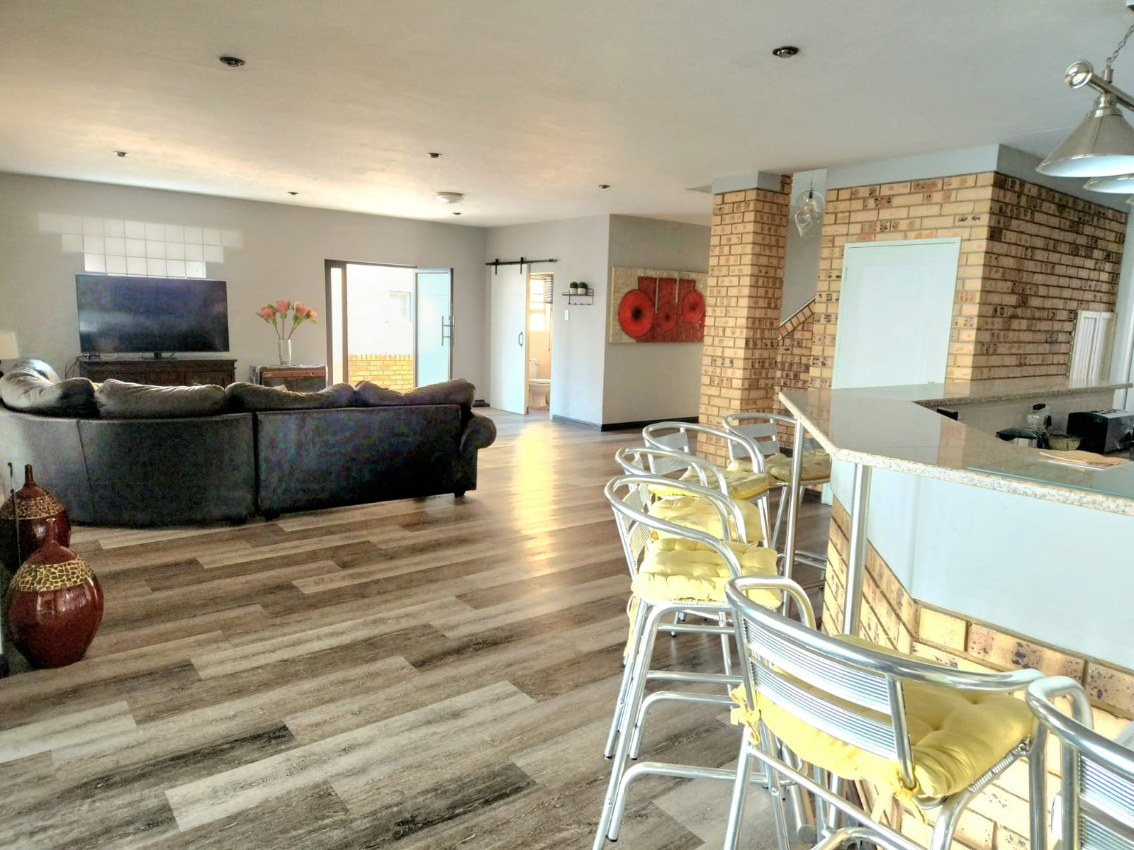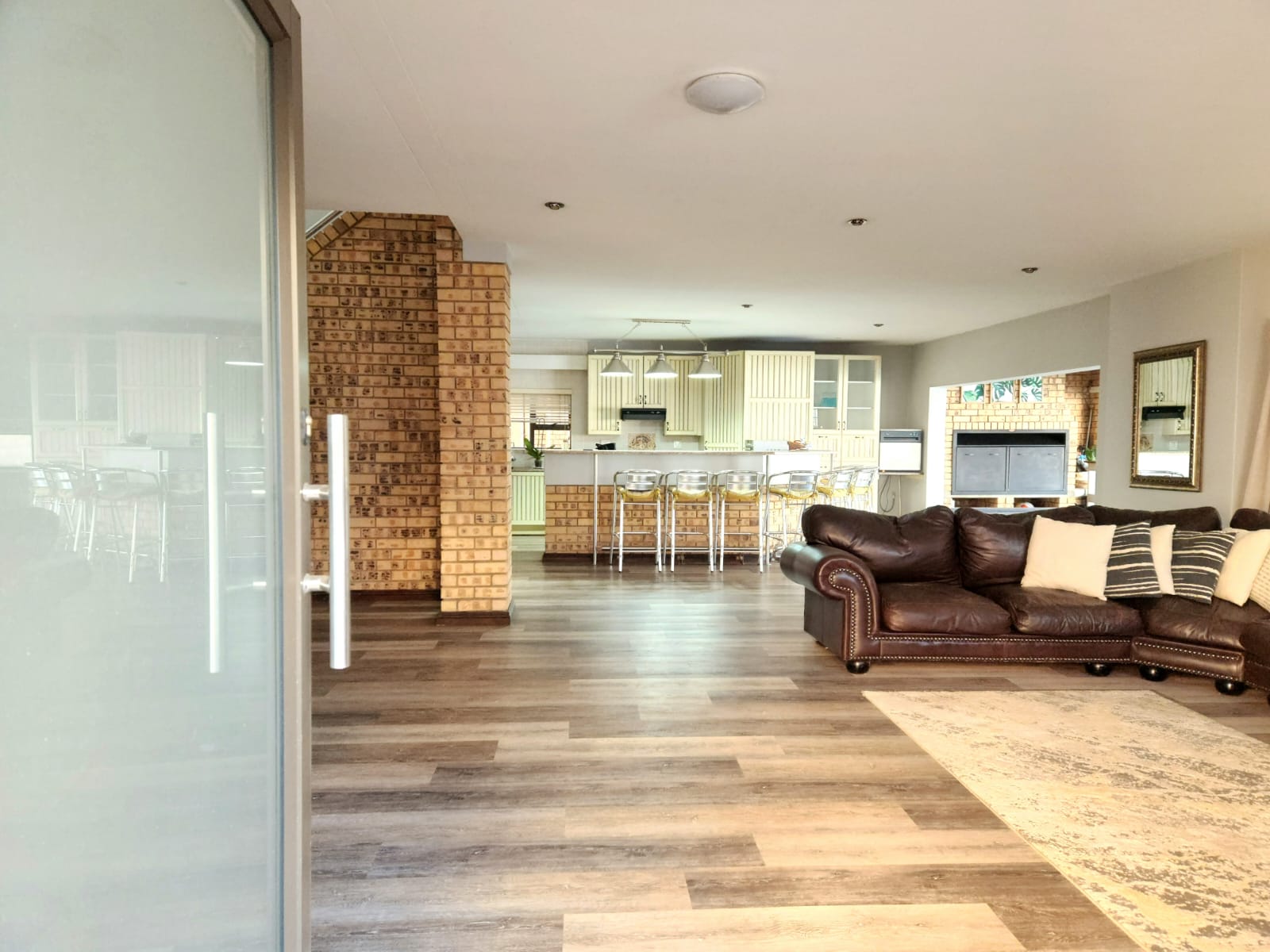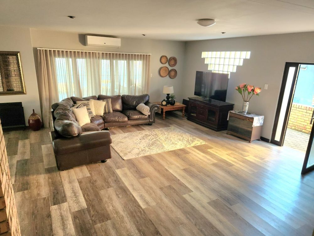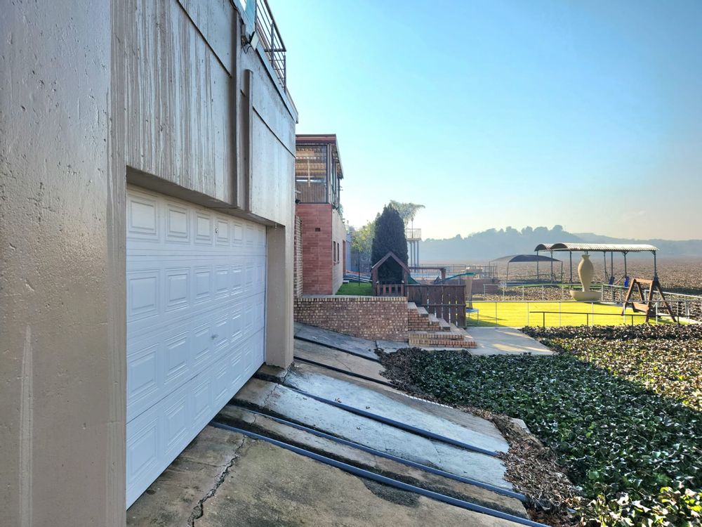 Positioned right on Bronkhorstspruit Dam, this luxurious 6-bedroom home features a versatile double-storey layout with mirrored open-plan living areas and a dedicated study.