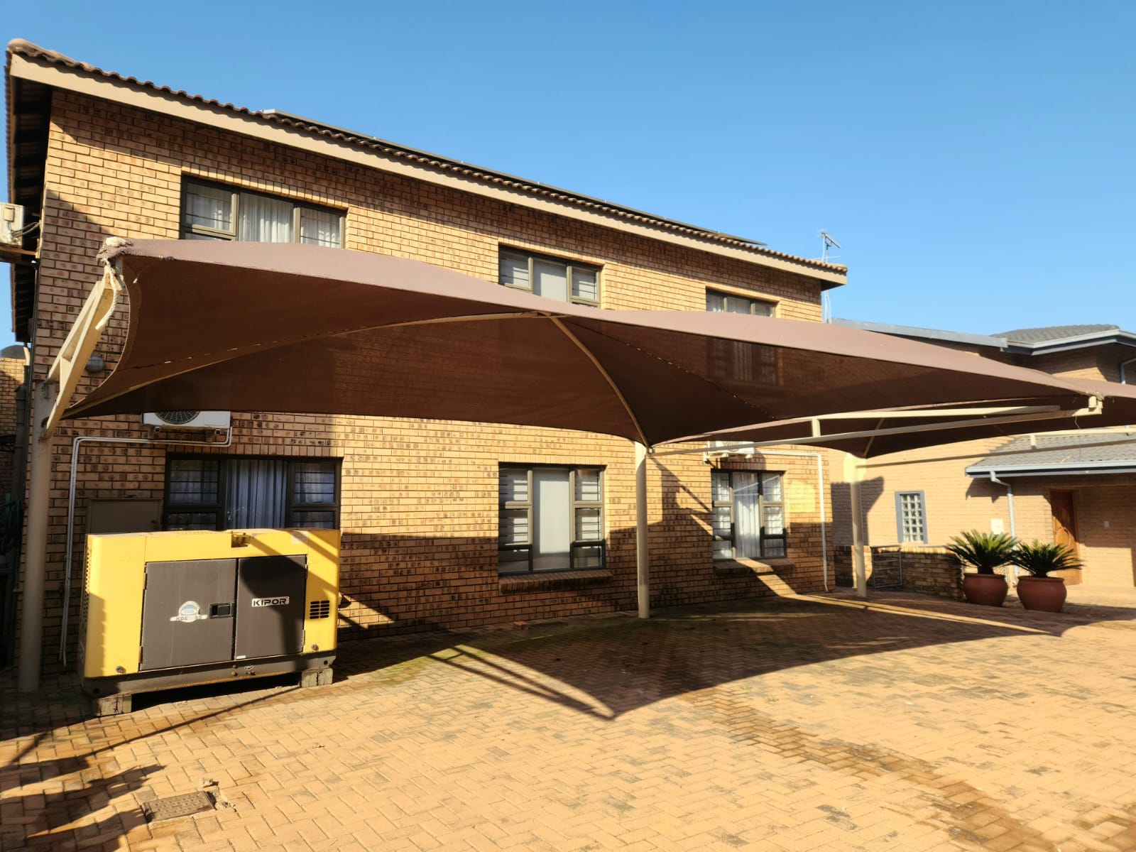 Vehicle parking includes a double carport and an additional single carport.
