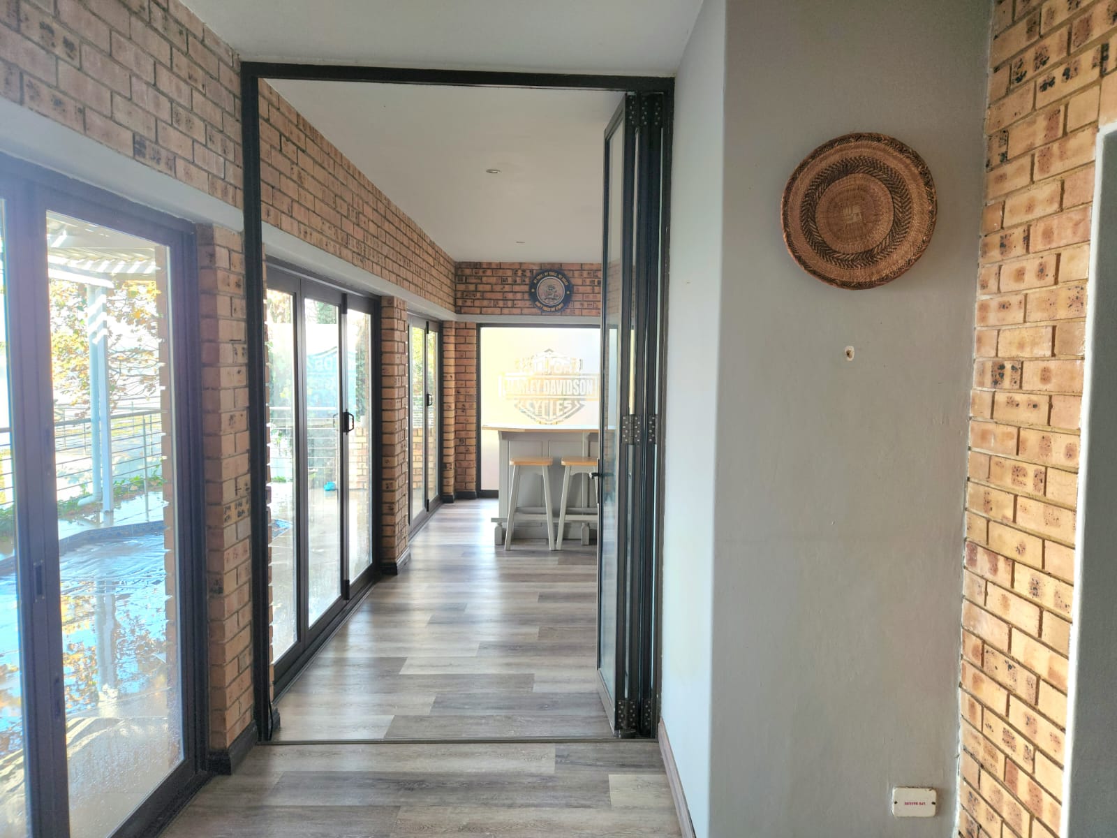 The interior is finished in calming natural tones, with vinyl flooring and air conditioning throughout. Storage and lifestyle needs are met with a brick-built boat garage (sized for a boat and two jet skis).