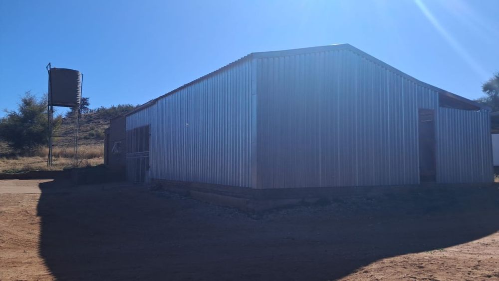 Fully equipped with a cold room, freezer and slaughter room. Together with 4 boreholes and 3 phase electricity.