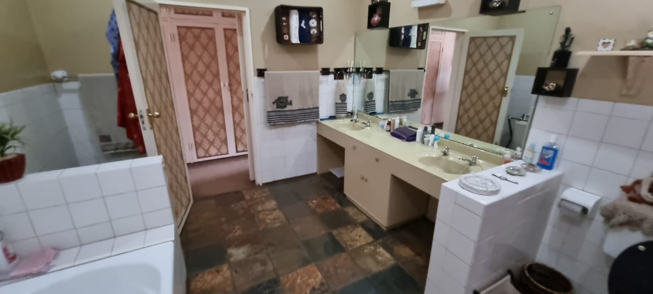 You cannot go wrong here - tiles in all living areas as well as in the study. 3 bedrooms (carpeted) with built in cupboards, and ceiling fans. The main bedroom is very spacious, with an ensuite bathroom (bath, double basin and toilet), AND you have a guest room with it's own ensuite bathroom with a shower.