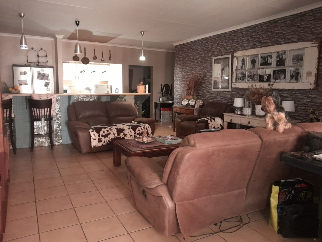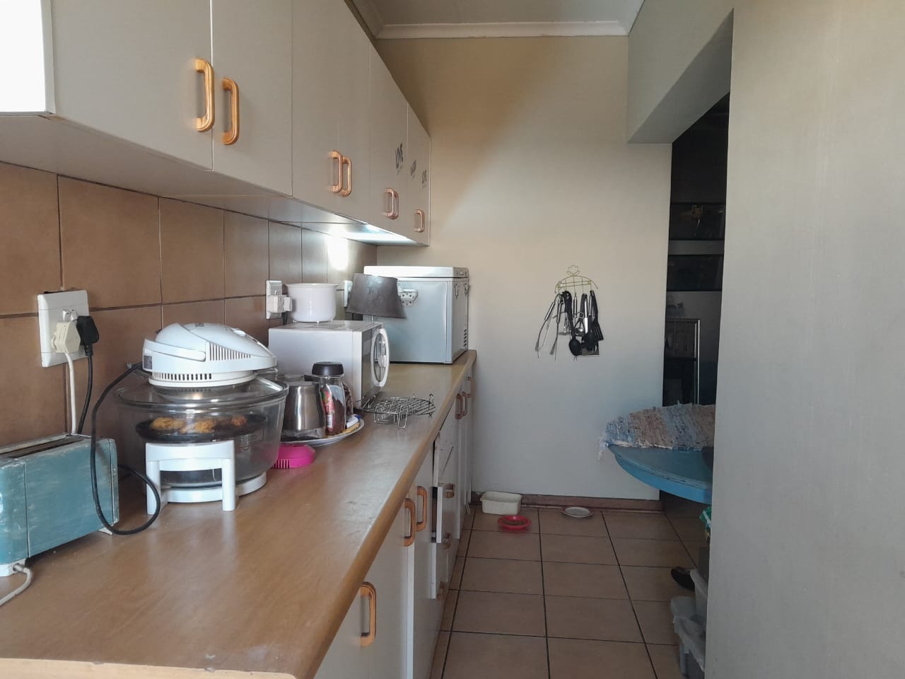 Next room we have is the lounge and open plan kitchen area - enclosed with Trellidor (because you can never be too relaxed), open, spacious, tiled. Kitchen counter to one side - imagine your teenager doing their homework while keeping you company in the kitchen.