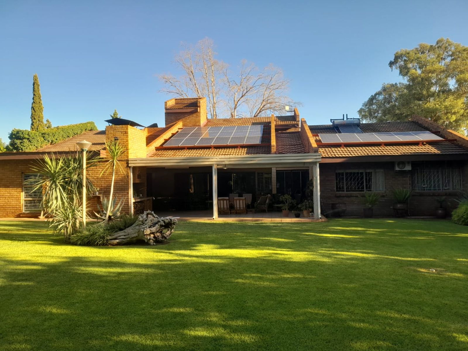 Outside, enjoy a lapa with braai, three automated garages, a pool, and irrigation system.