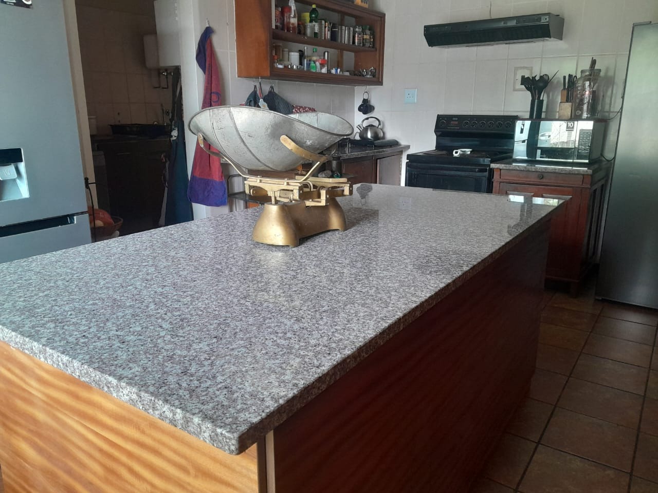Kitchen with island to increase the workspace. Space for oven and fridge/freezer. Separate scullery and pantry for all your cooking essentials and needs.