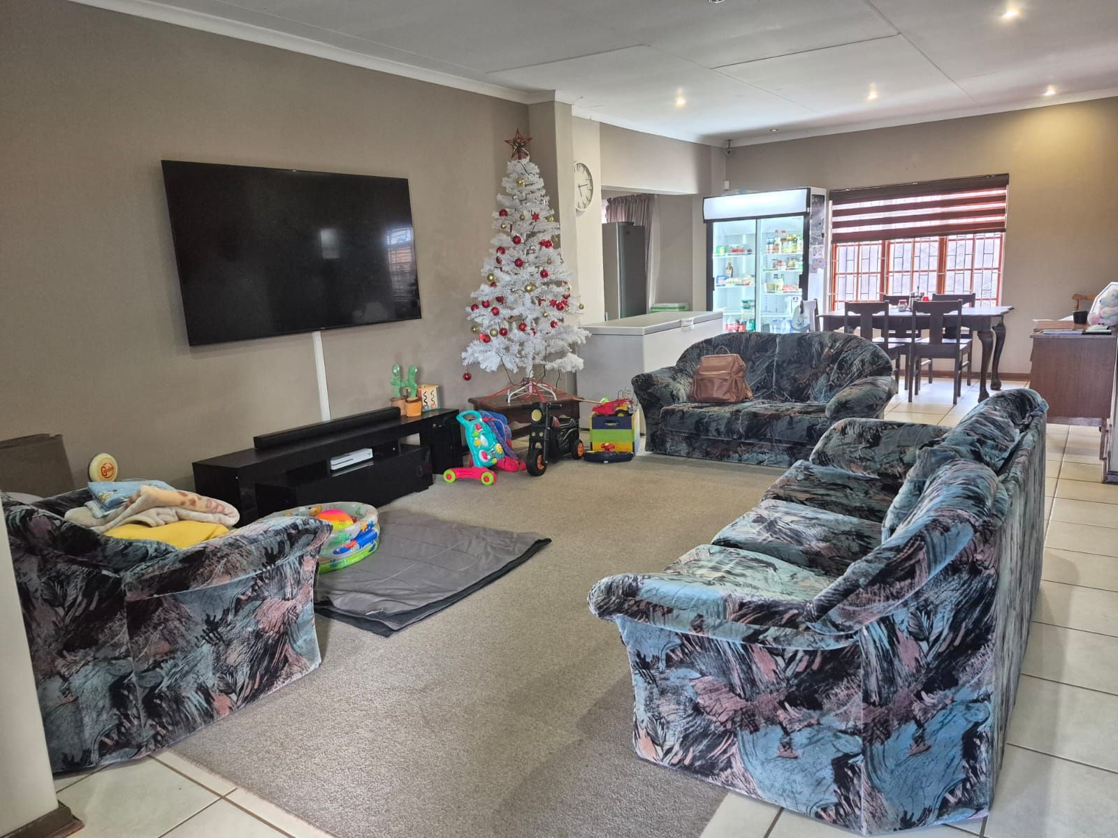From the moment you arrive, the property exudes exclusivity with its pristine front lawn, elegant brick façade, and secure perimeter enhanced by fencing and burglar bars. Extensive paving and a thoughtfully integrated shade structure create a polished, low-maintenance outdoor environment.