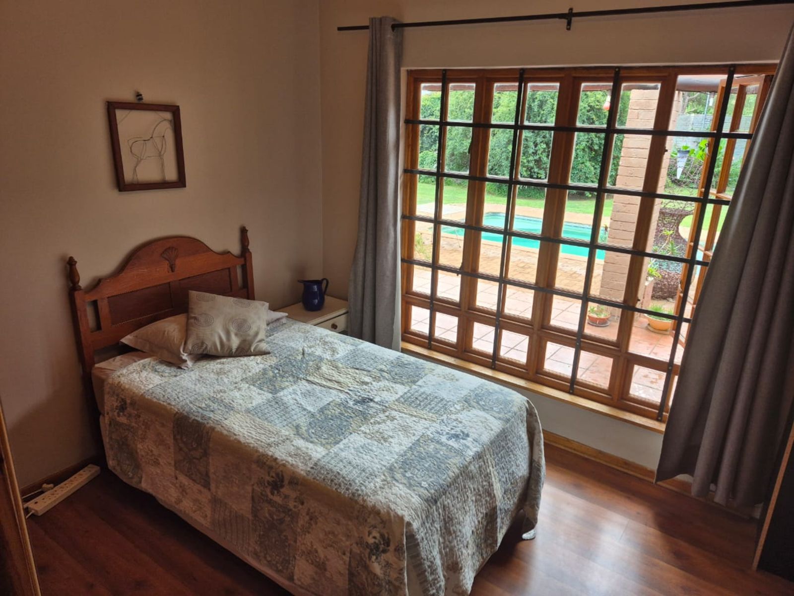 For effortless entertaining, the home includes an impressive indoor braai area featuring a built-in bar with seating. A sliding door opens directly onto the outdoor area where a sparkling pool becomes the focal point of leisure and relaxation.