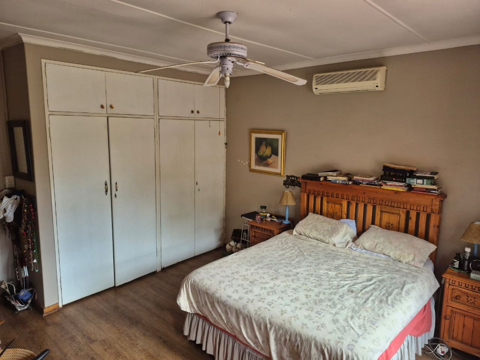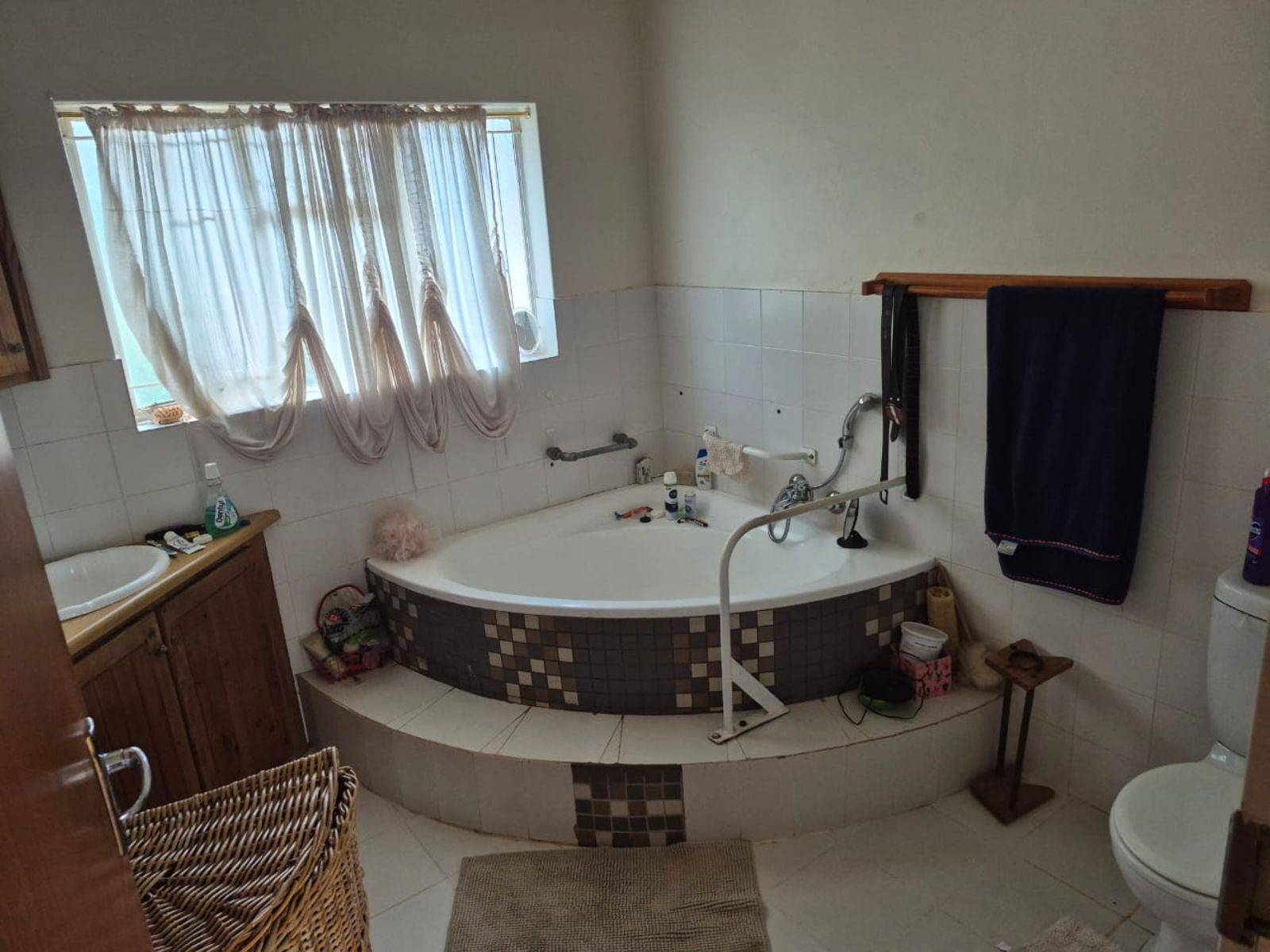 Accommodation comprises well-appointed bedrooms with laminated flooring, built-in cupboards, and ceiling fans. The main bedroom offers an air-conditioning unit and a private ensuite bathroom equipped with a corner bath, basin, and toilet. The family bathroom includes a shower, bath, basin, and heater light, while a separate guest toilet adds convenience.