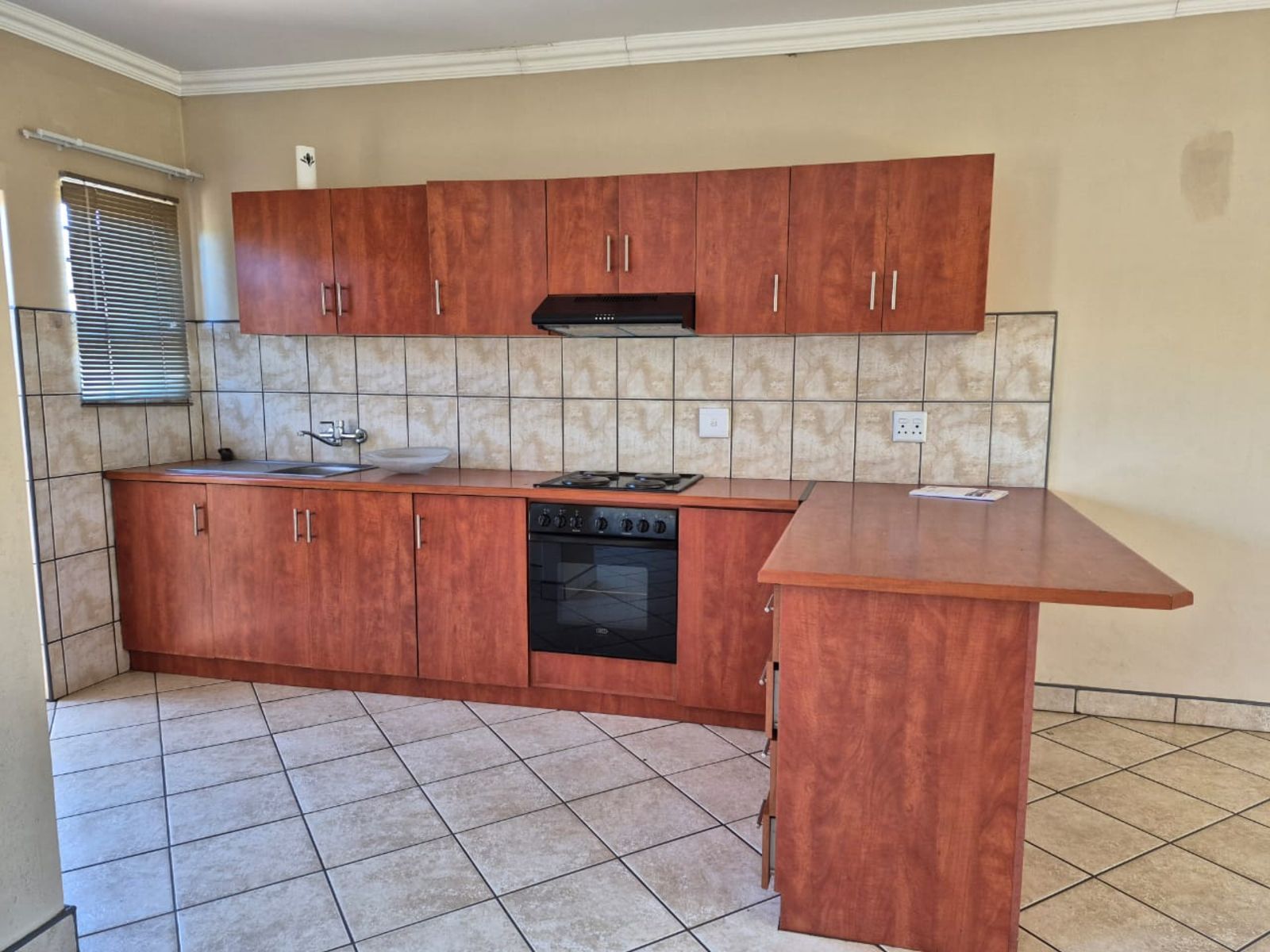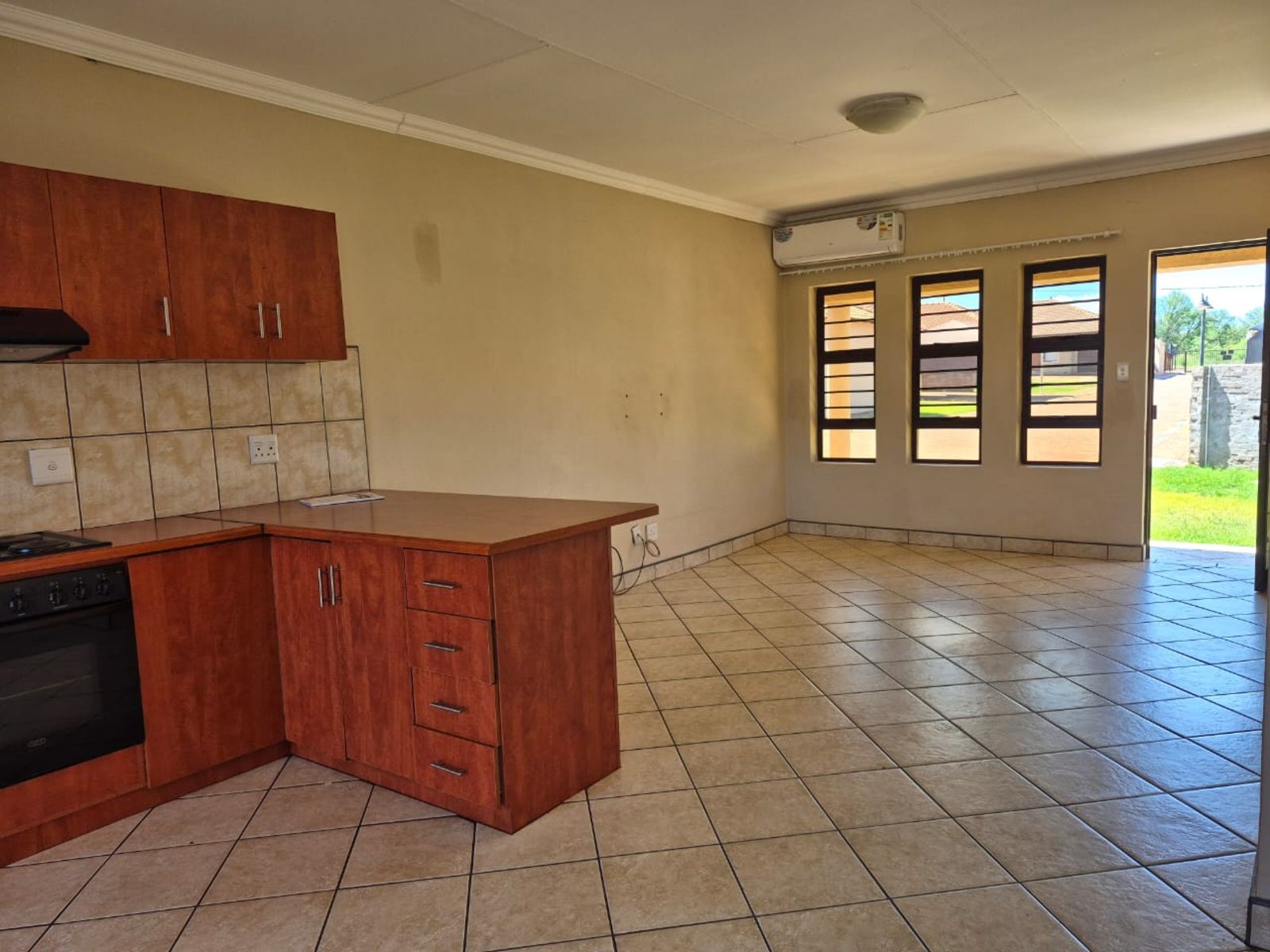This lovely 3-bedroom, 2-bathroom home is situated in a well-maintained and secure estate, offering peace of mind and comfortable living. The house is fully tiled throughout and features a spacious open-plan lounge fitted with an air-conditioning unit for year-round comfort. The kitchen is equipped with built-in cupboards and a stove/hob, flowing seamlessly into the dining area—ideal for everyday living.