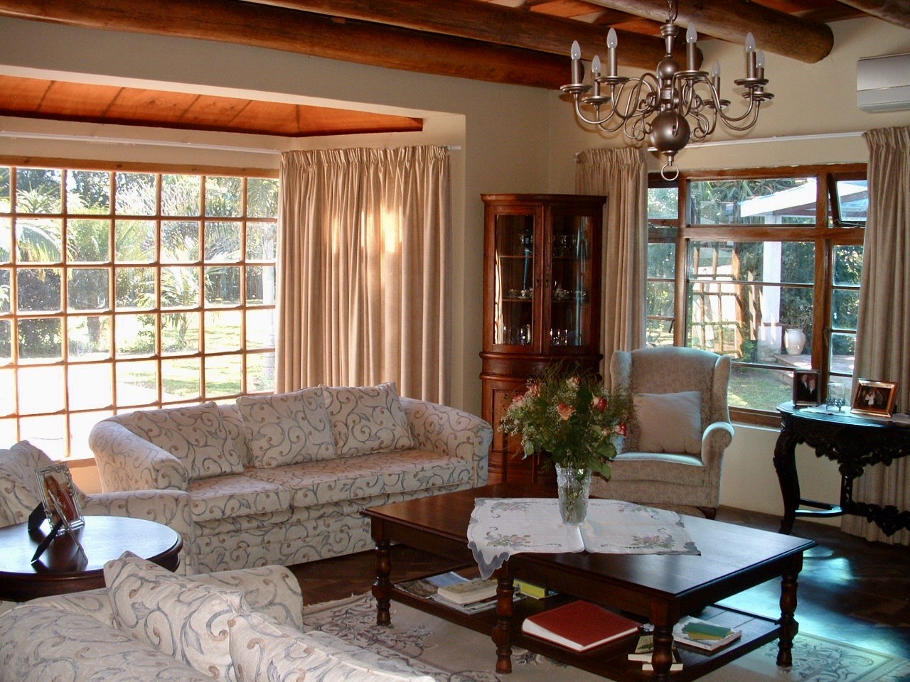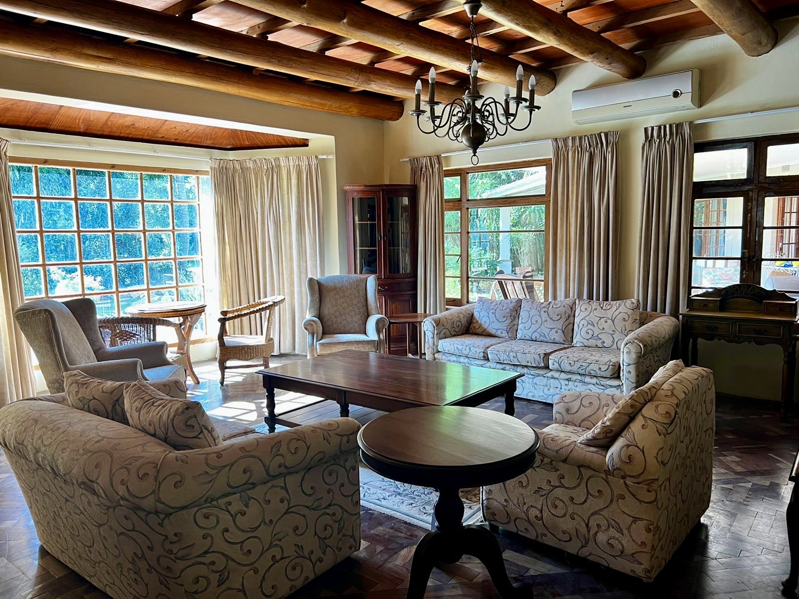 Set within a magnificent mature garden, alive with indigenous trees, lush greenery, and abundant birdlife, this spacious home exudes warmth, charm, and timeless appeal. Designed for those who value peace, privacy, and a true connection with nature, the property offers a lifestyle of serene country living combined with every modern comfort.