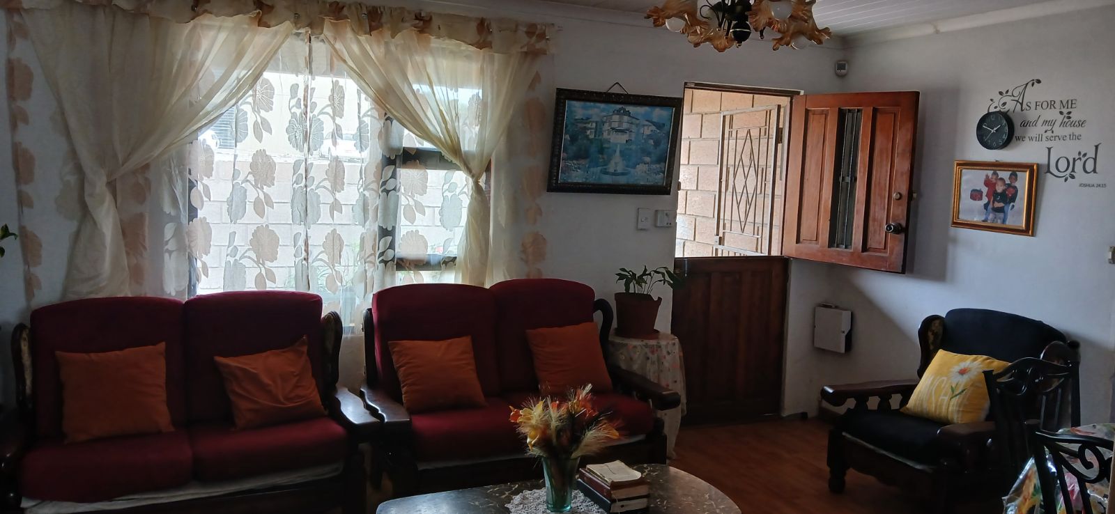 Upon entering the premises through the gate, you are greeted by a beautifully appointed living room, creating a warm and inviting atmosphere for family and friends.