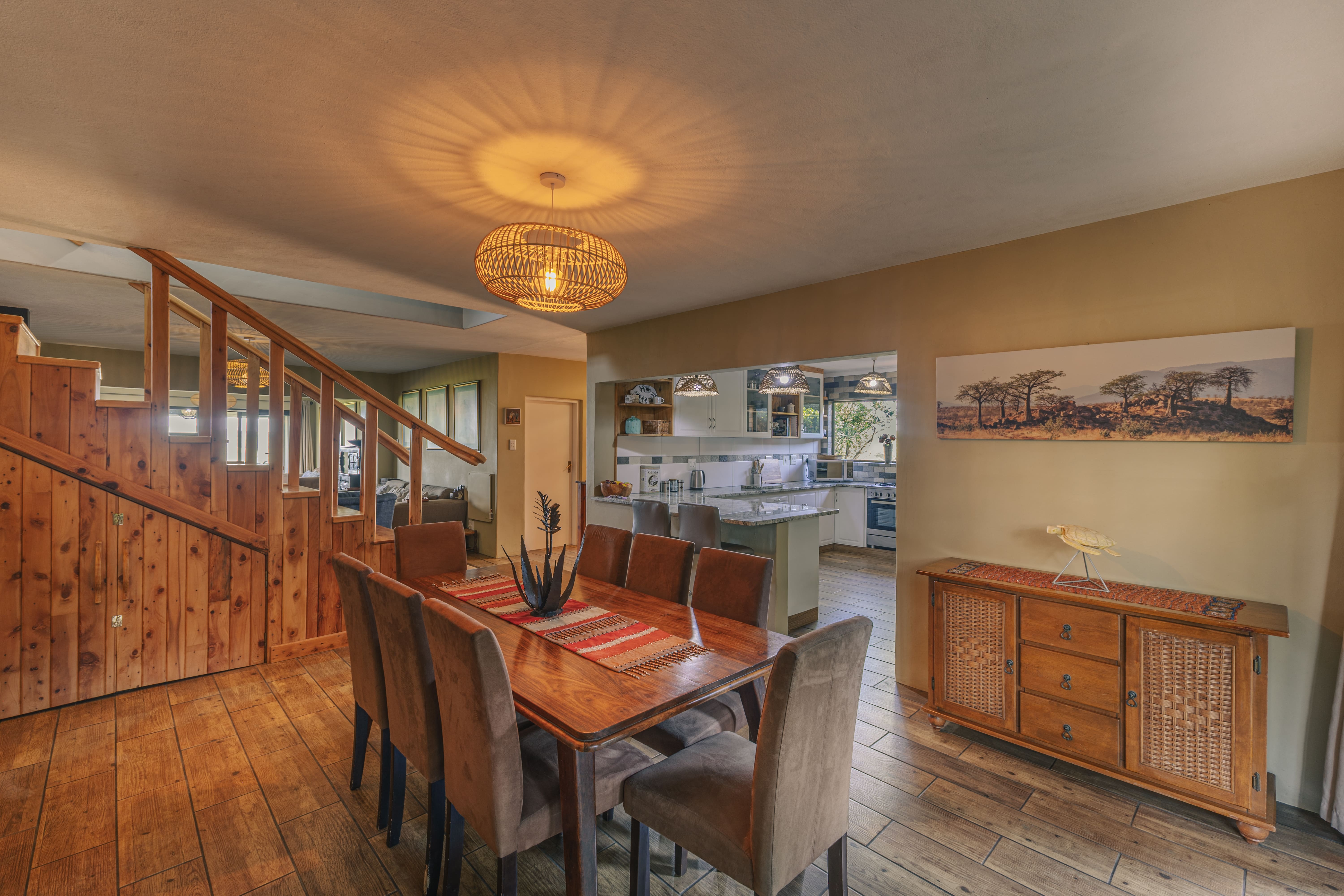 Set within the secure and exclusive Kwawula Game Estate, this four-bedroom home offers a rare combination of family living and natural surroundings. The estate forms part of a proclaimed game reserve, providing privacy, security and uninterrupted views across open bushveld.