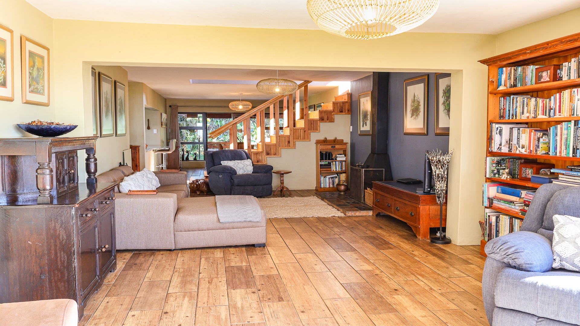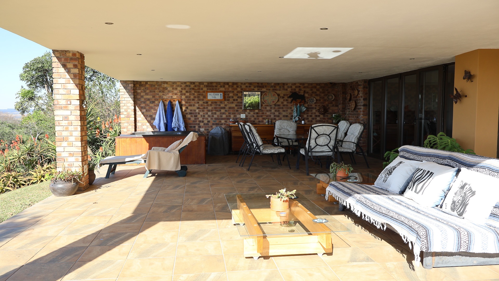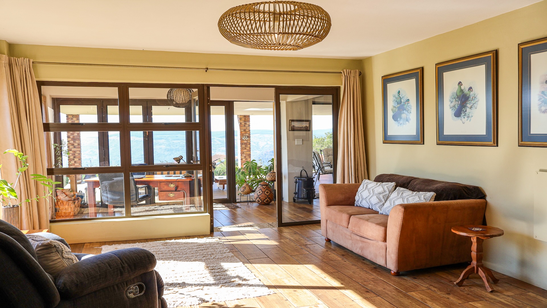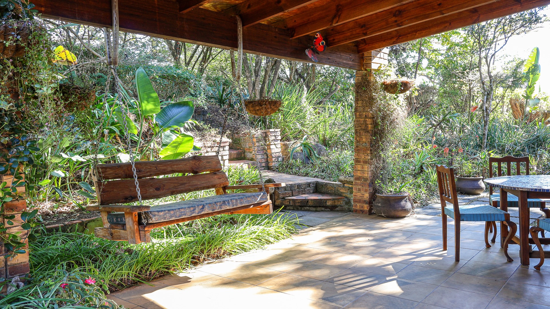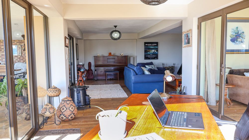 The home features a spacious open-plan living area with tiled flooring and four generous bedrooms, all designed for comfort and ease of living. A family and pet-friendly layout add everyday convenience. Step outside to a low-maintenance indigenous garden—perfect for relaxed mornings or entertaining guests. The property blends indoor comfort with outdoor serenity, creating a peaceful retreat in nature.