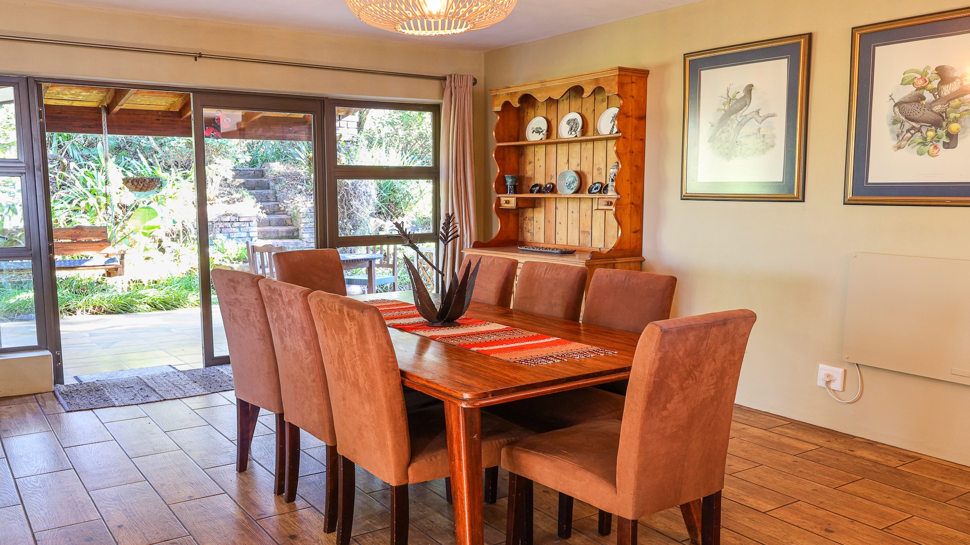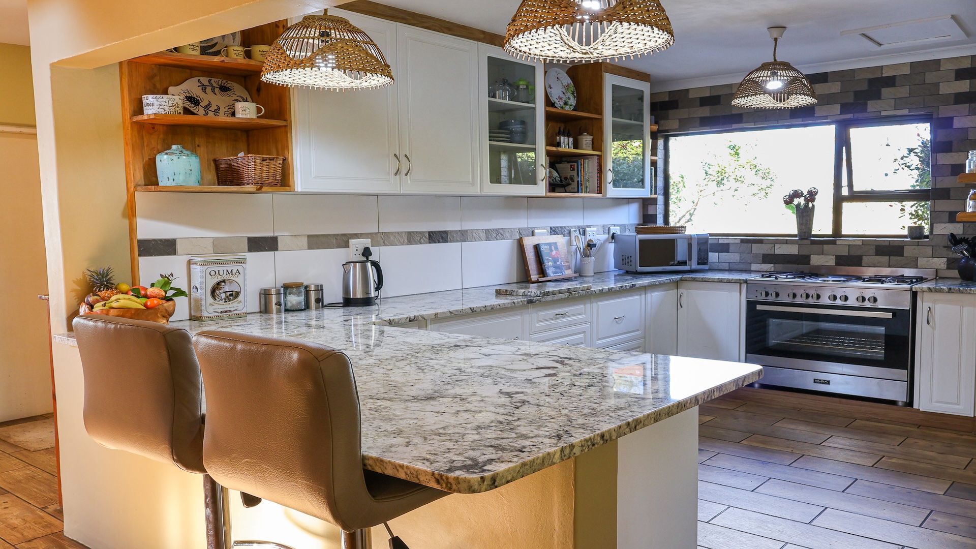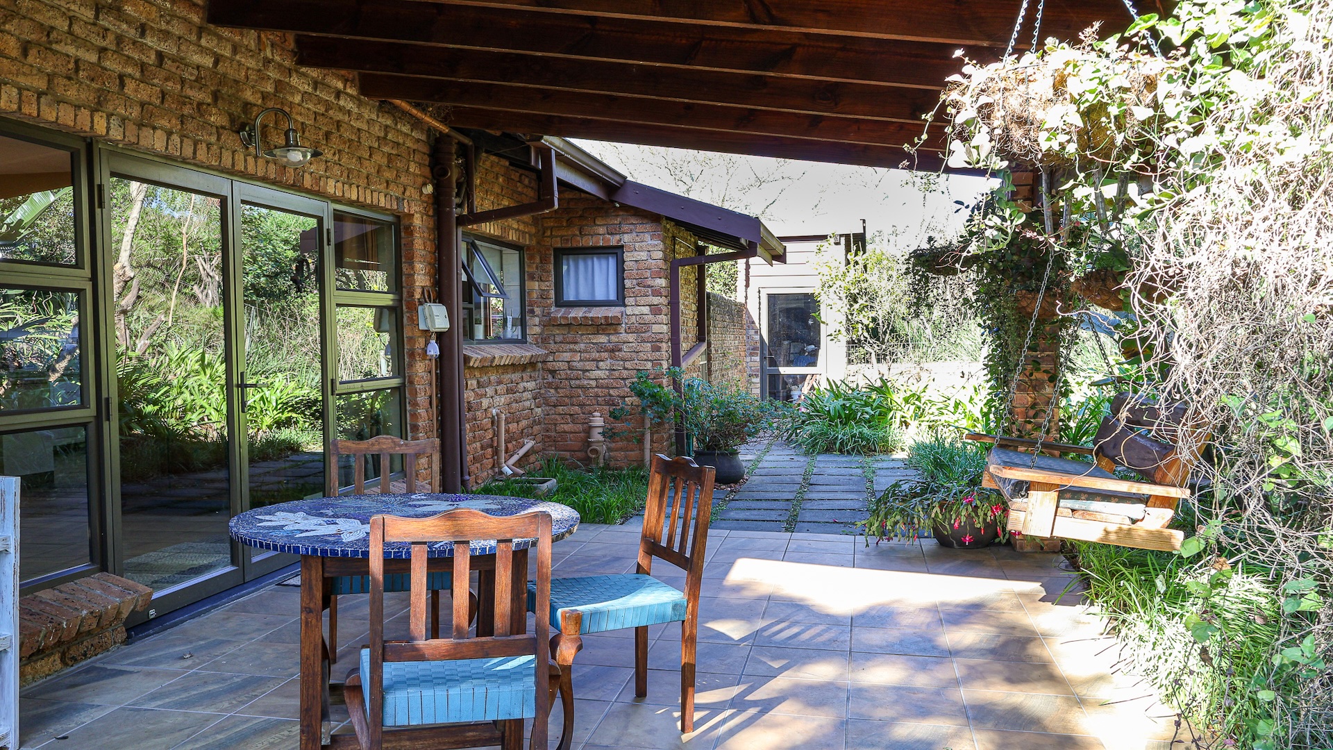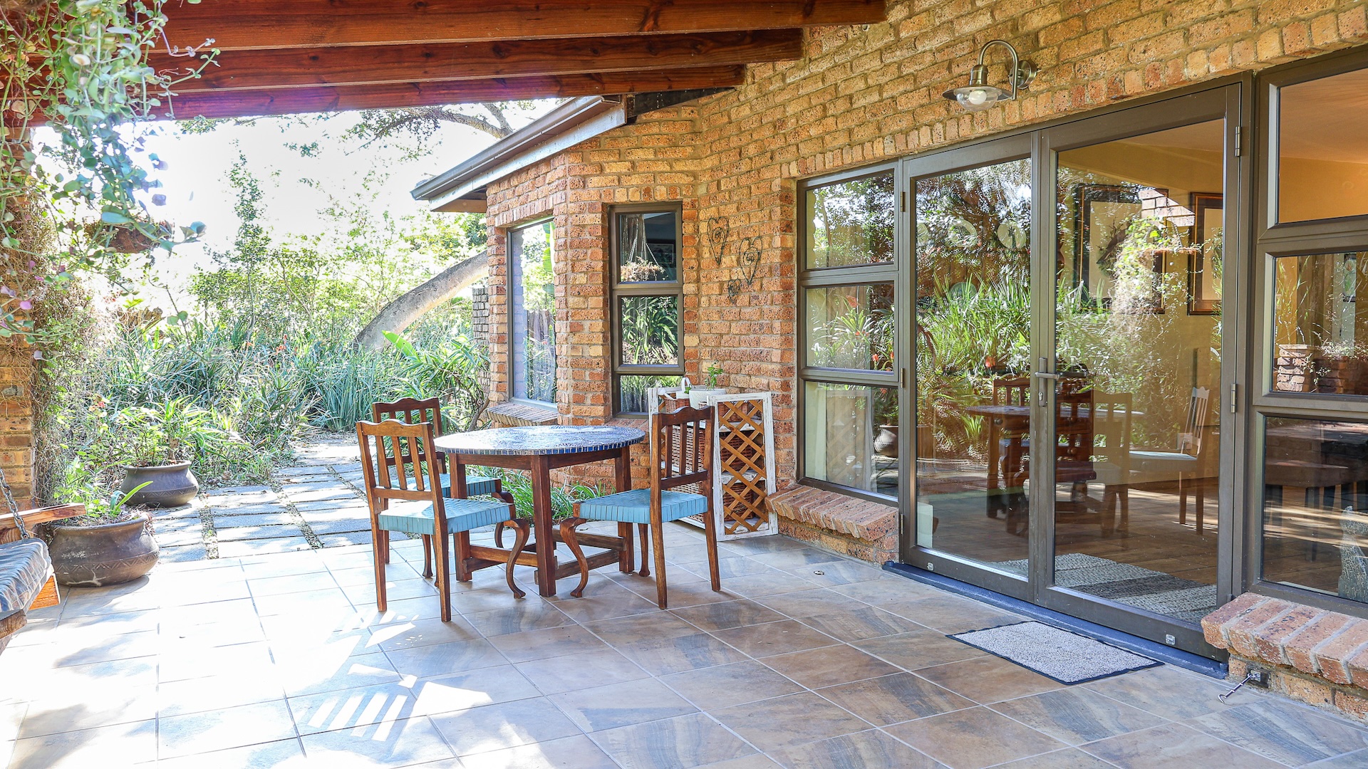 The home features a spacious open-plan living area with tiled flooring and four generous bedrooms, all designed for comfort and ease of living. A family and pet-friendly layout add everyday convenience. Step outside to a low-maintenance indigenous garden—perfect for relaxed mornings or entertaining guests. The property blends indoor comfort with outdoor serenity, creating a peaceful retreat in nature.