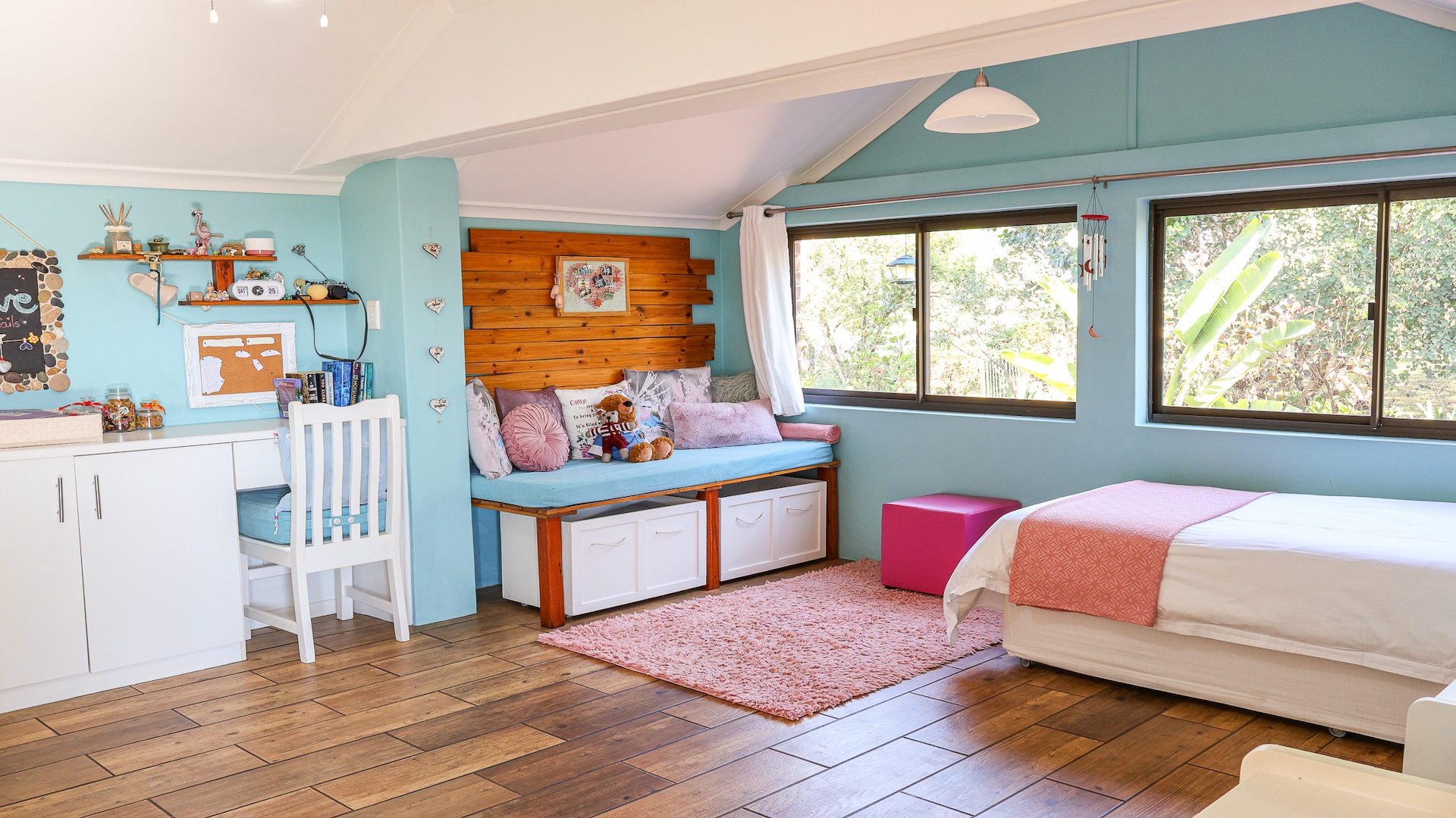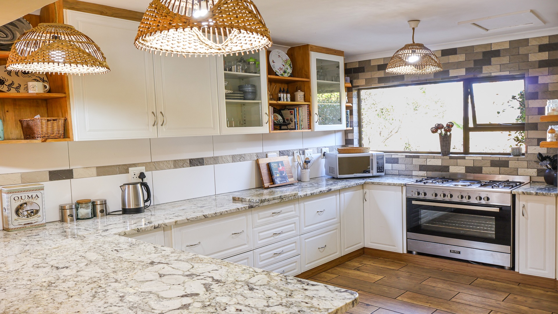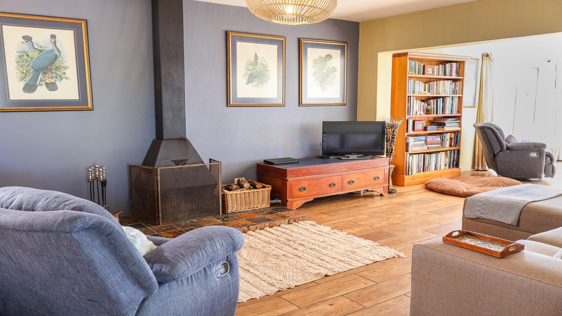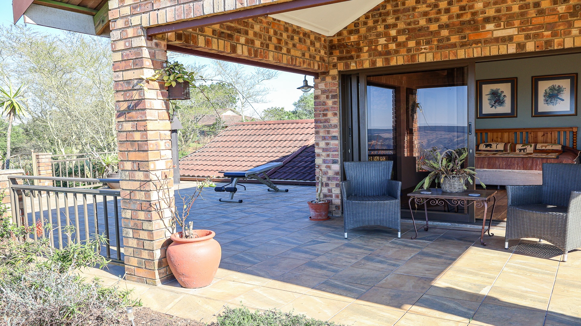 The home features a spacious open-plan living area with tiled flooring and four generous bedrooms, all designed for comfort and ease of living. A family and pet-friendly layout add everyday convenience. Step outside to a low-maintenance indigenous garden—perfect for relaxed mornings or entertaining guests. The property blends indoor comfort with outdoor serenity, creating a peaceful retreat in nature.