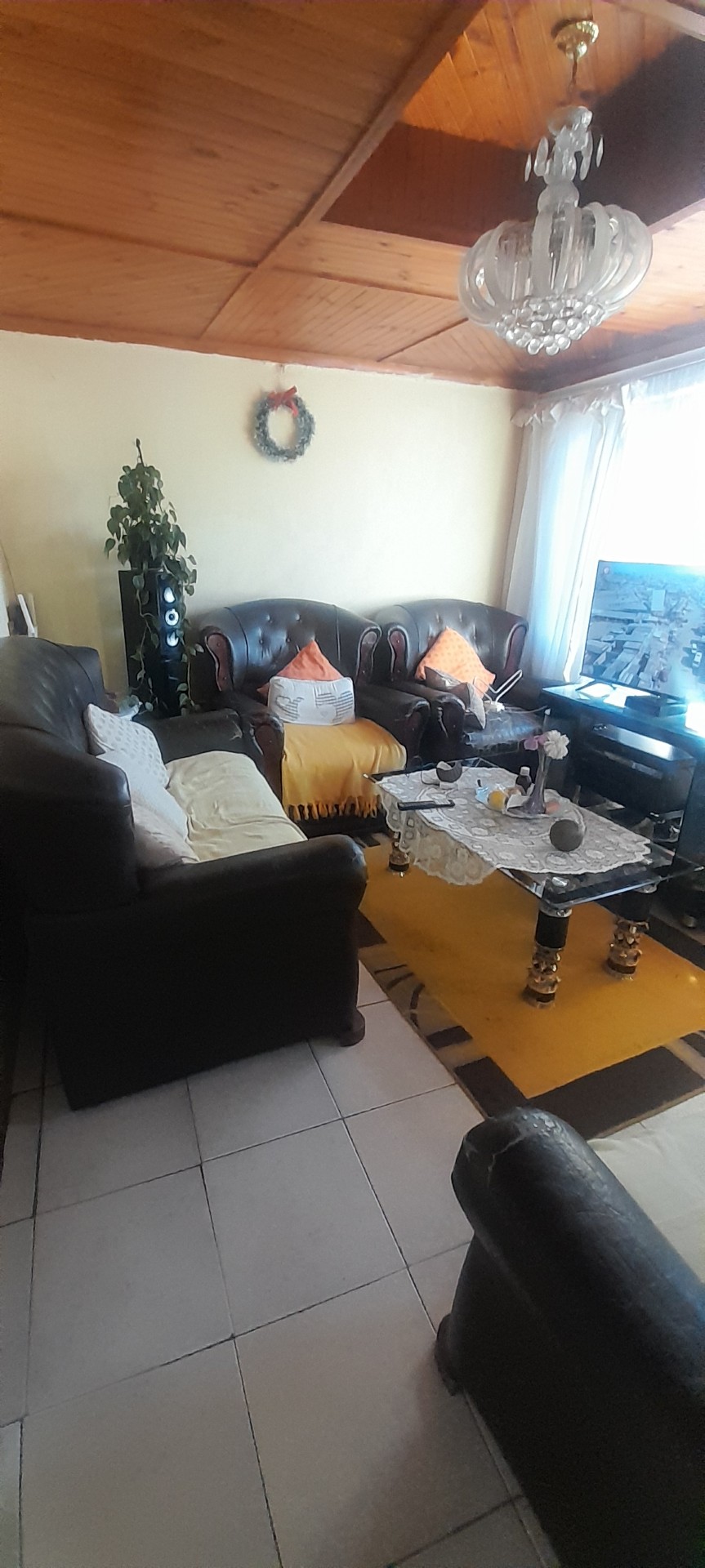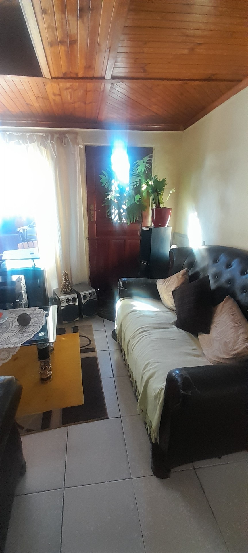 @ spacious bedrooms, a lounge with a beautiful pine ceiling and a fitted lamp, perfect for relaxation. A kitchen with a tap and sink, ideal for cooking and meal preparation. The floors throughout the house, adding a touch of elegance. A garage for secure parking and an outside toilet. A big yard perfect for outdoor activities and gardening. Security gates for added protection. Boundary walls for enhanced security and privacy.