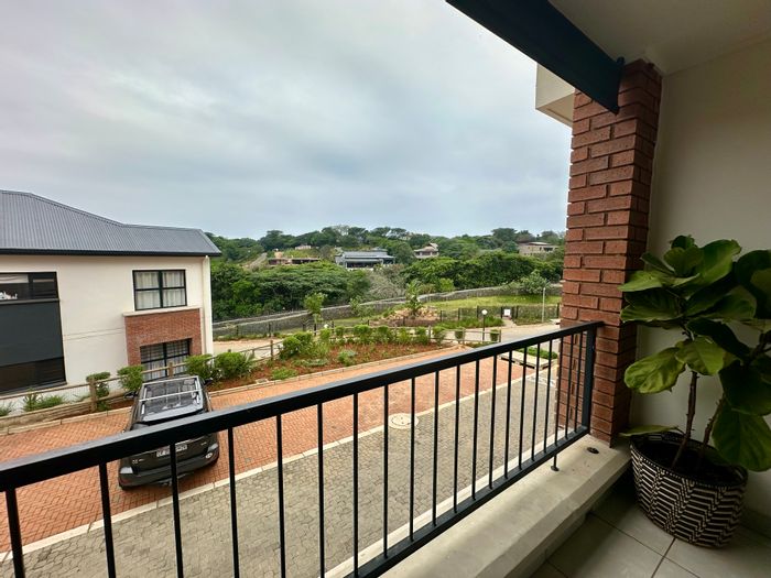 Entertain on a private balcony with built-in braai in Ballito Hills Estate, moments from beaches, schools and shops; furnished 3-bedroom, 2-bath apartment with two secure parking bays.