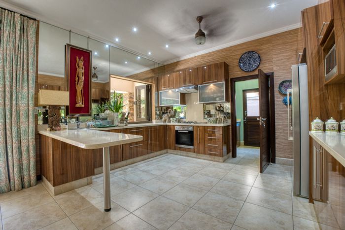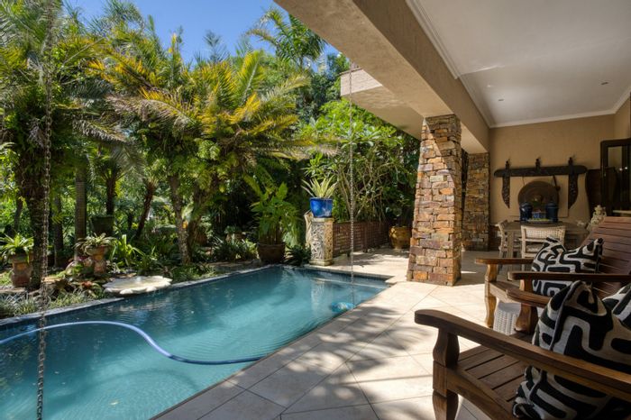 Luxurious six-bedroom home in Hilltop Estate with sea views, gourmet kitchen, pool, and ample parking, near Ballito amenities.